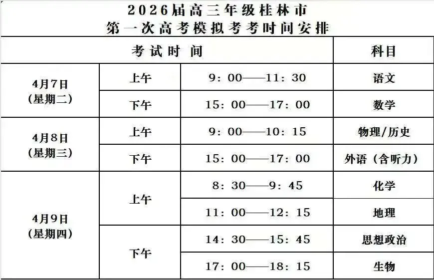 考试名称:桂林一模桂林市2026届高三第一次高考模拟考试
