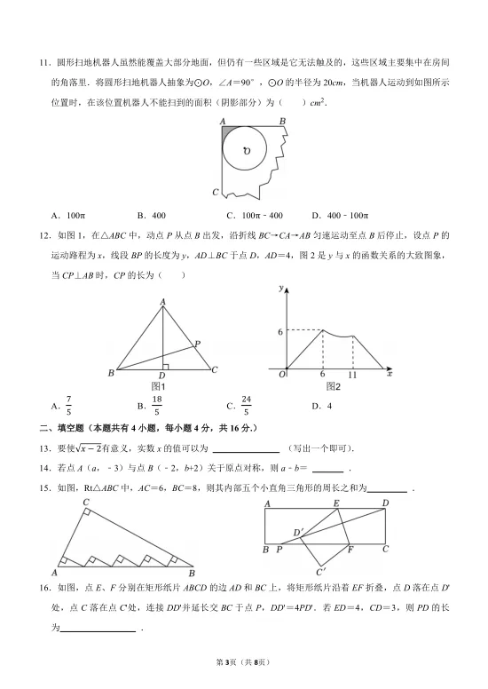试卷涵盖了初中数学核心知识点,重点考查以下板块: