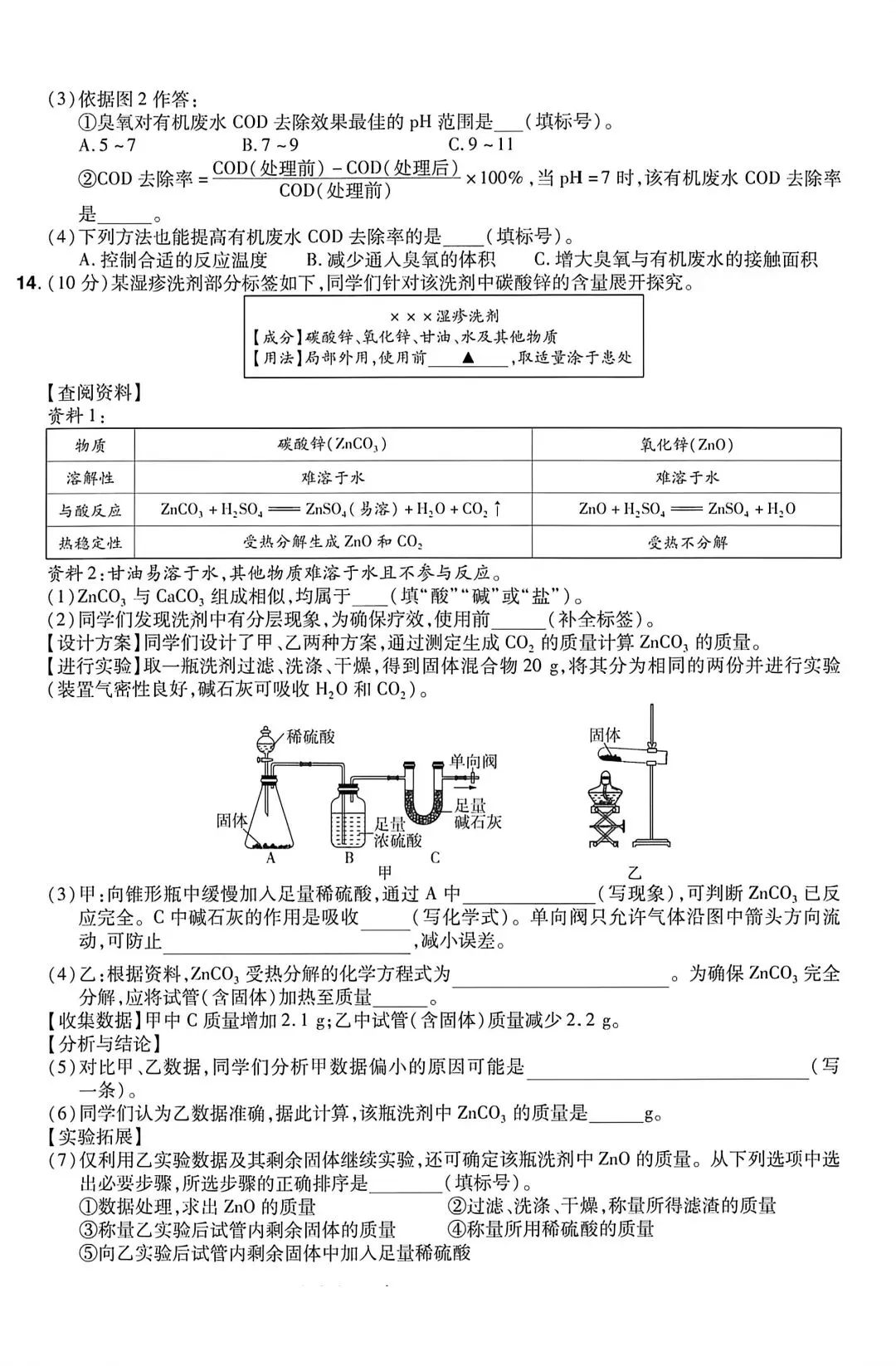 应子晴同学发几套化学试卷做做
