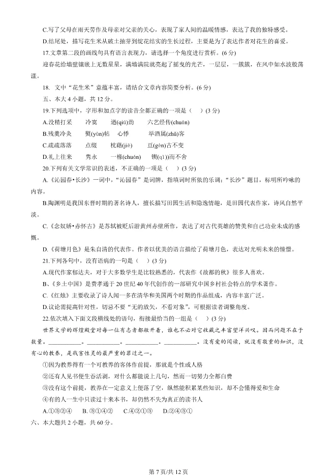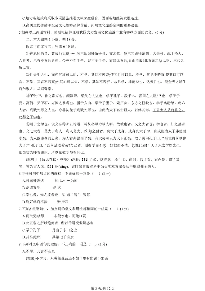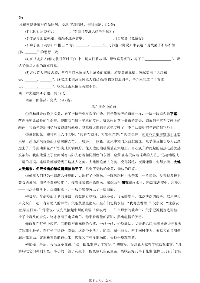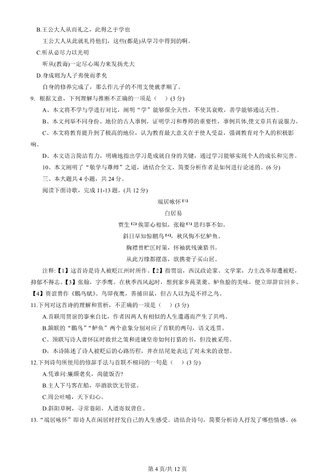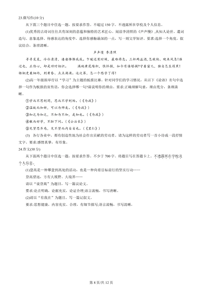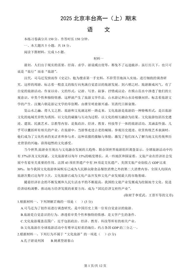 2025北京丰台高一上册期末语文试卷(有答案) 电子版试卷获取,后台回复:试卷