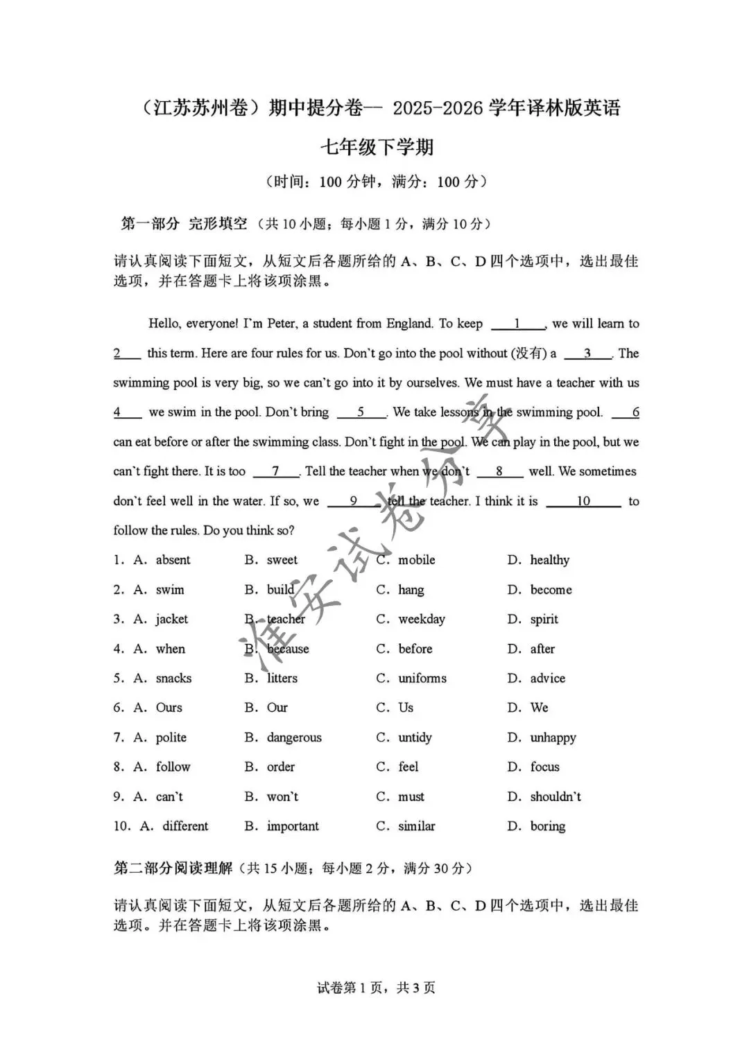 >2025--2026学年七下期中试卷--英语(原卷+解析)