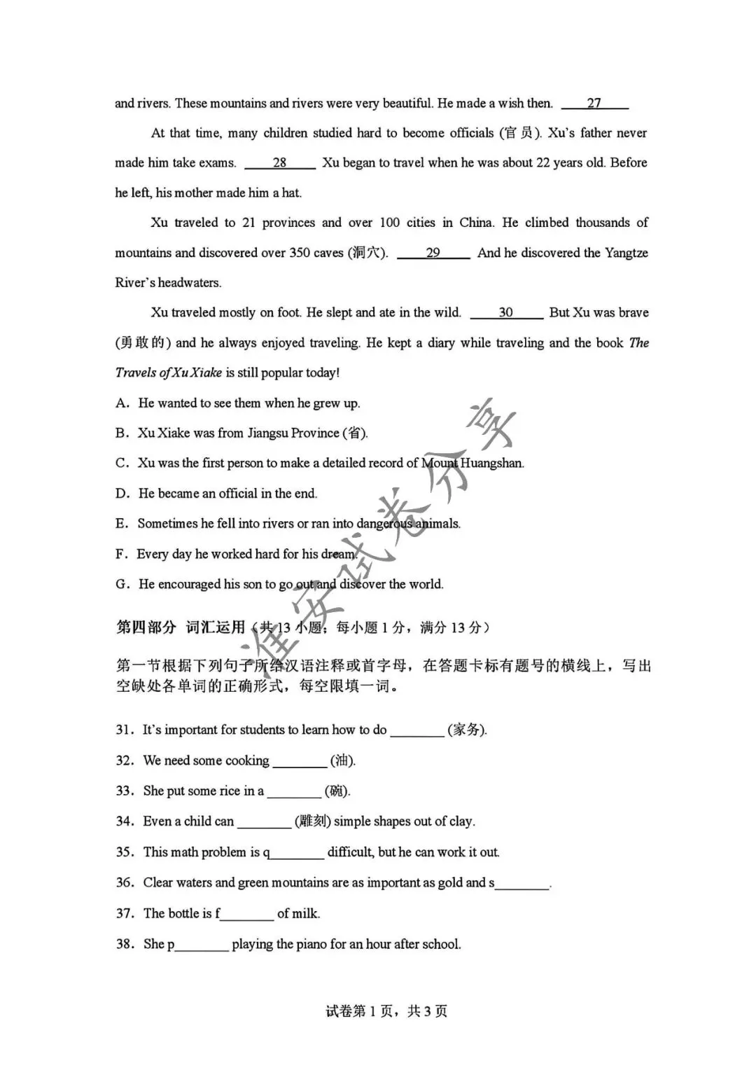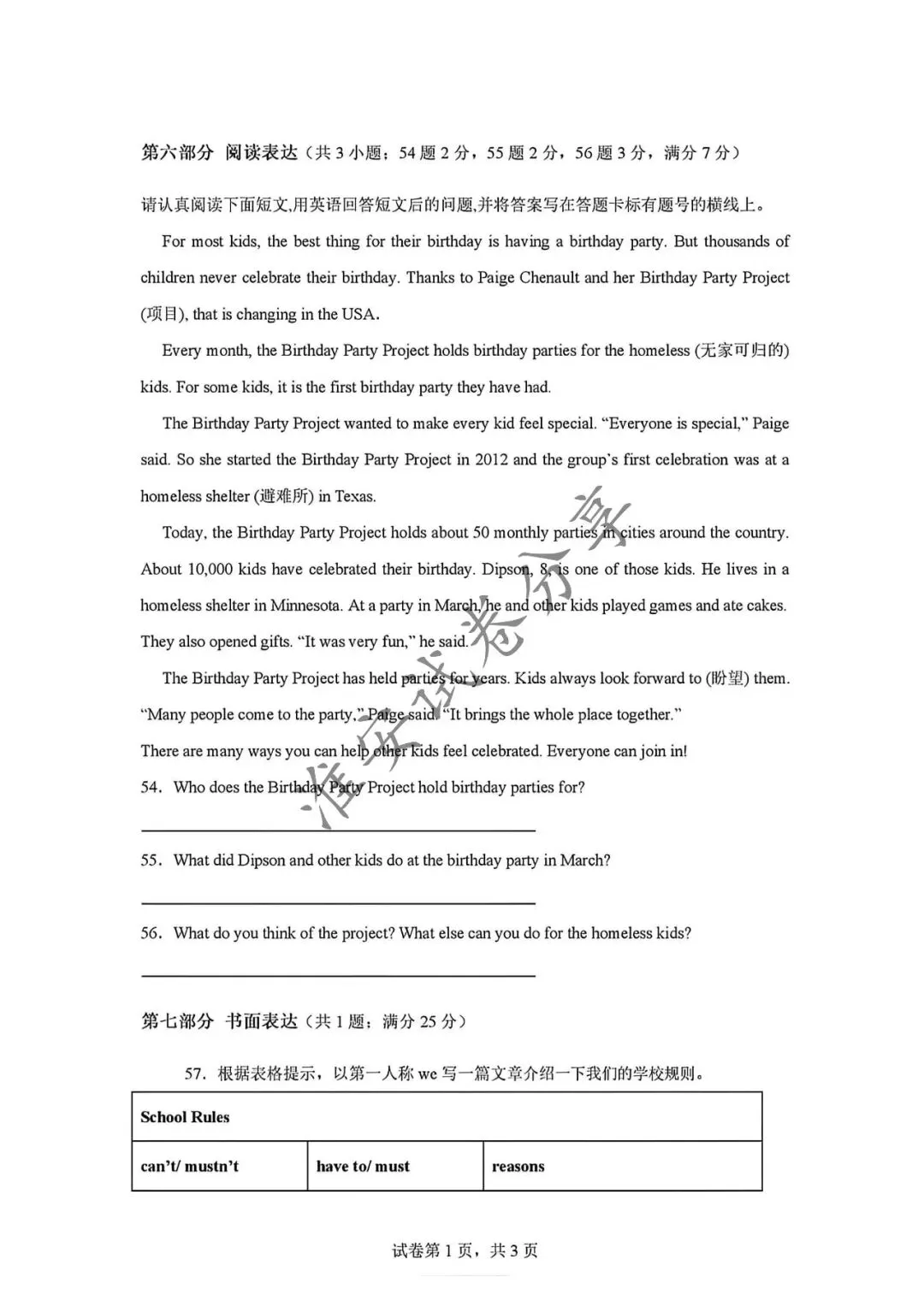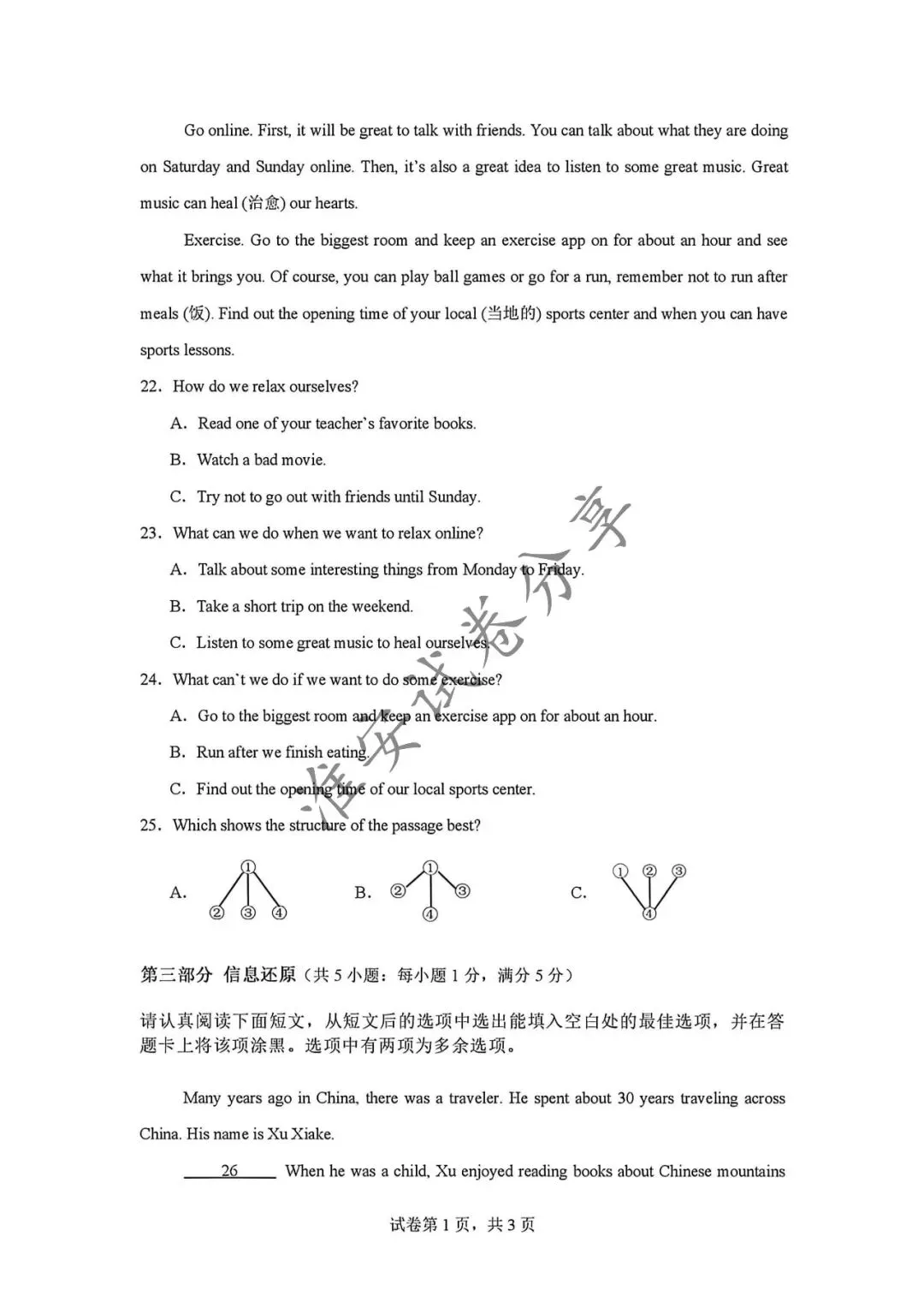 中考英语试卷及答案