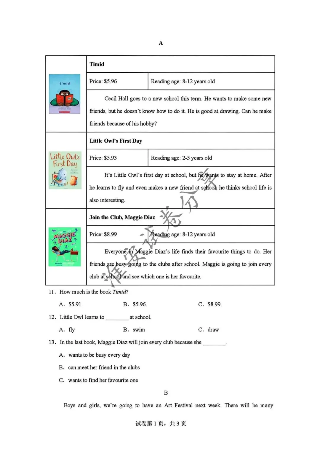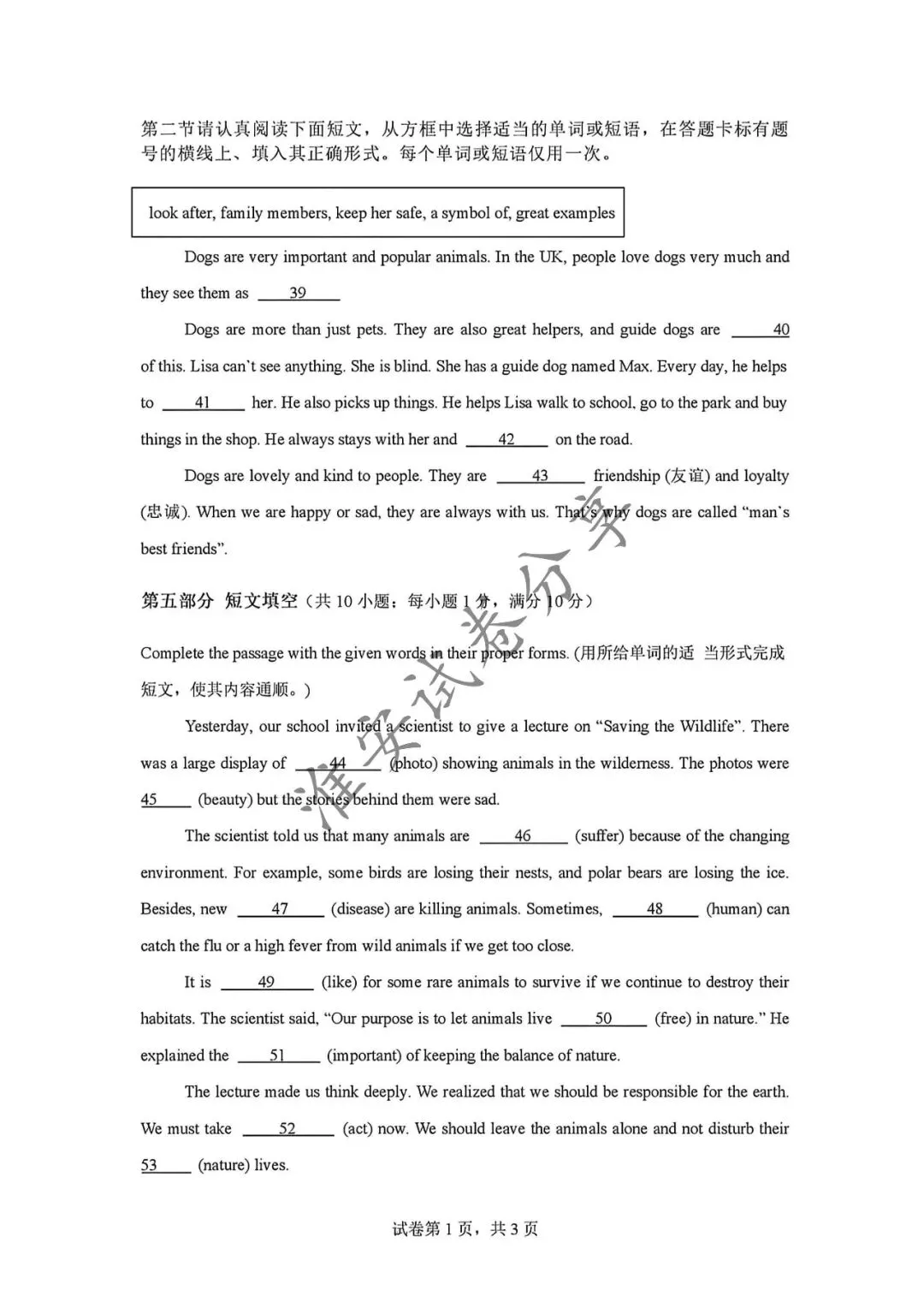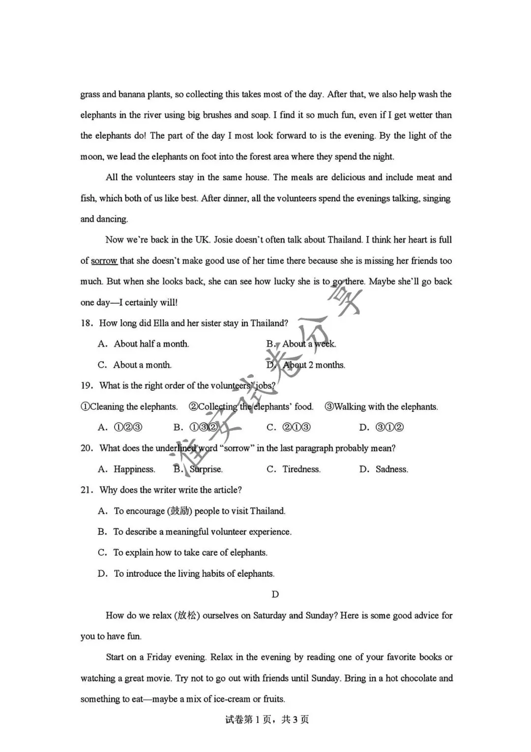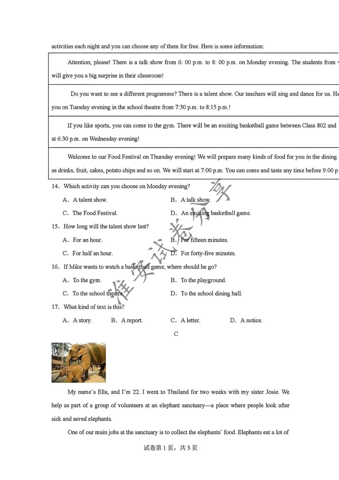 中考英语试卷及答案