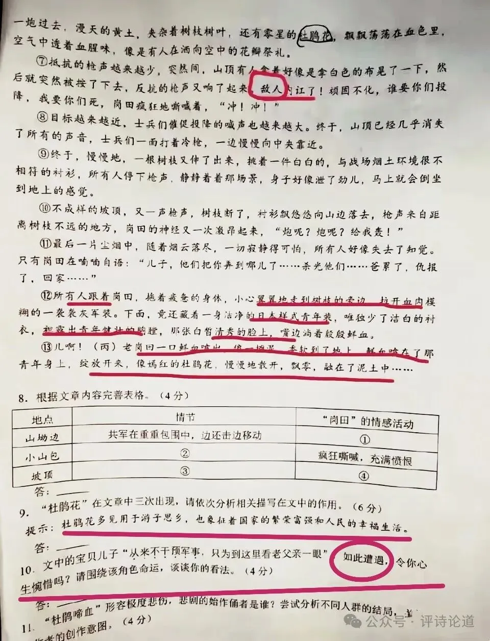 最近,有网友曝光了“四川省成都市新都区九年级语文试卷”上,一篇名为《杜鹃花落》的阅读理解文存在着“美化侵Hua日jun”的嫌疑。