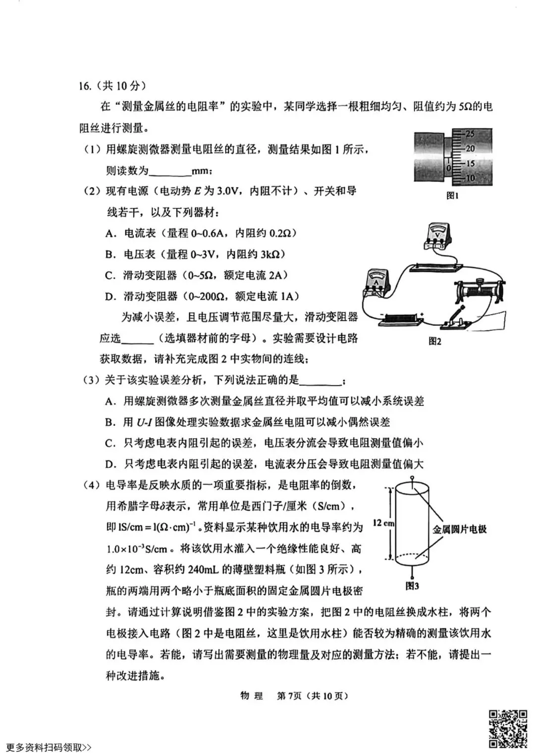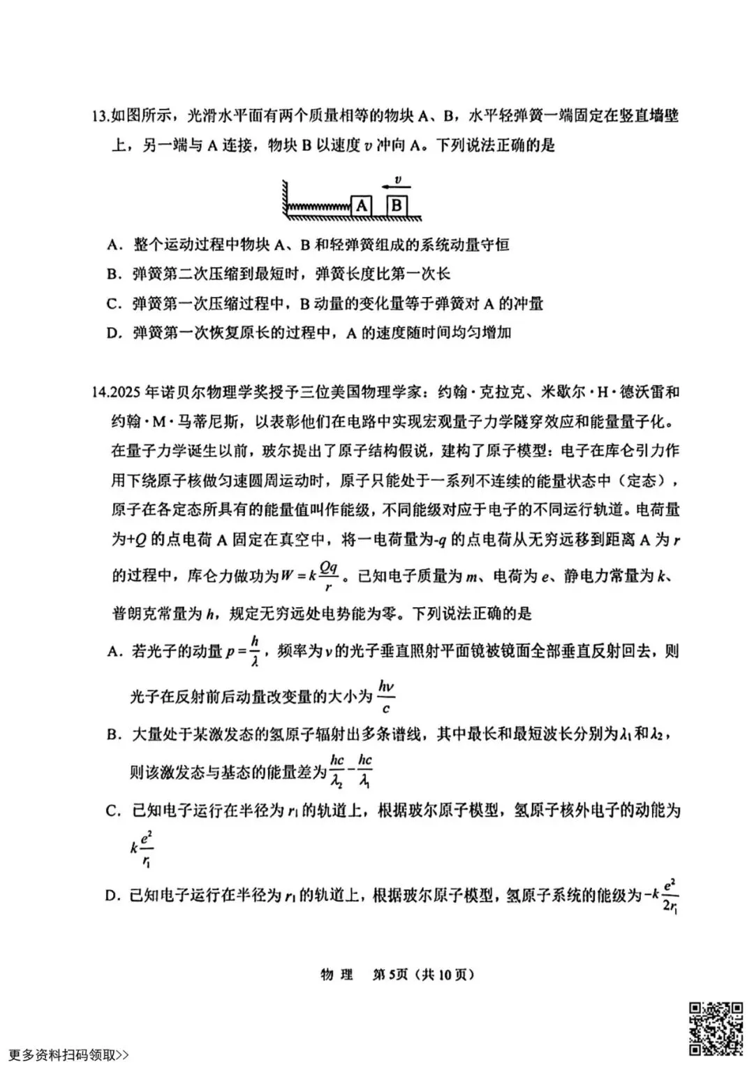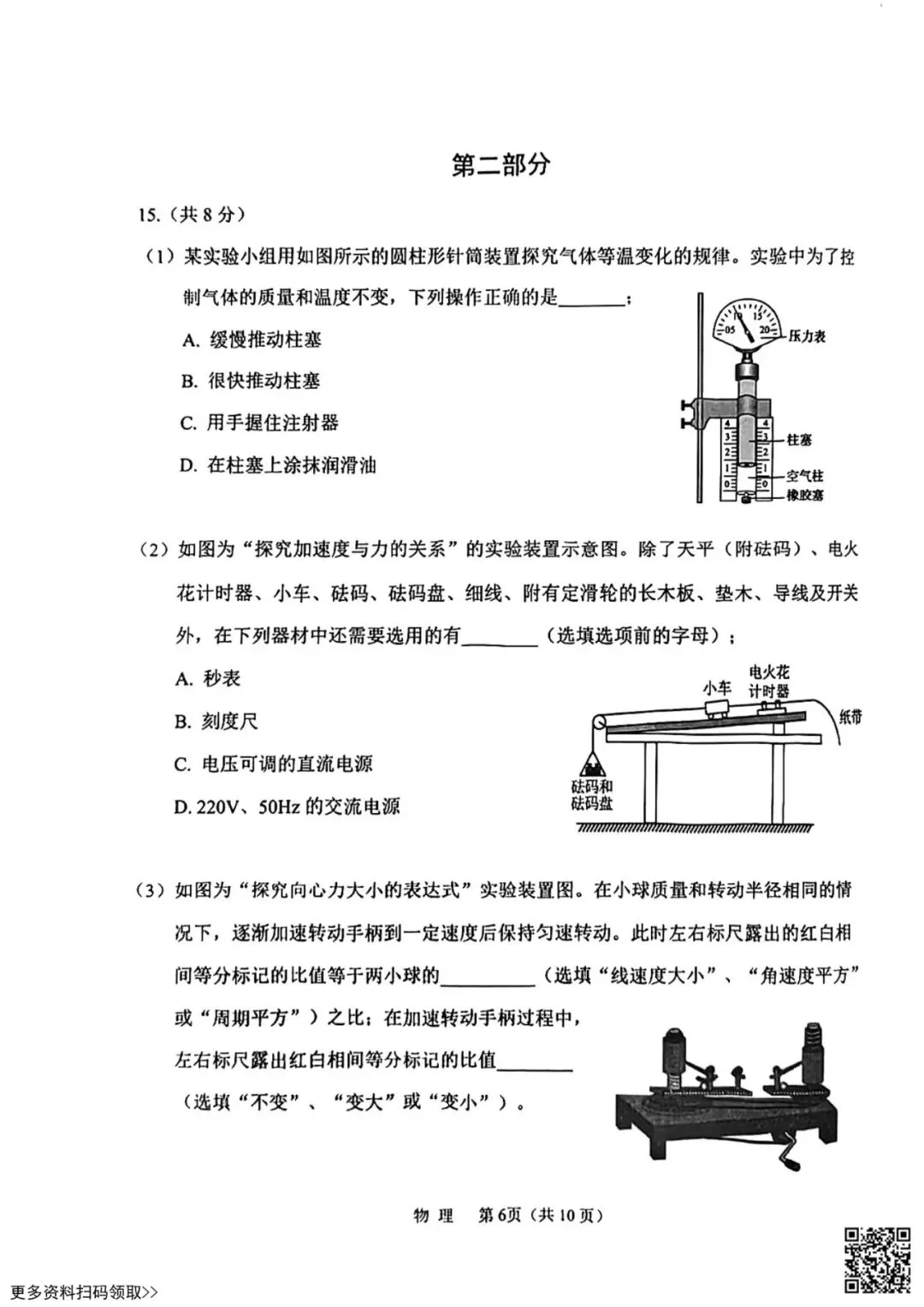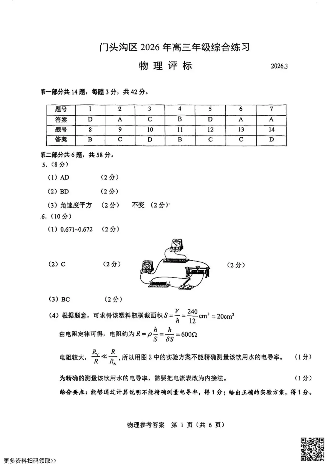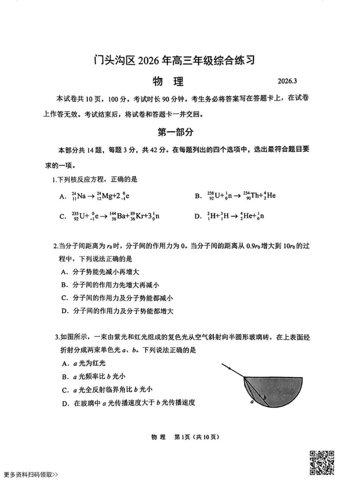 今天给大家分享的是2026北京门头沟高三一模物理试卷(含答案),其他区域或学校的学生都可以练一练。近期会持续分享,欢迎大家多多关注,也可以把我们分享给更多人哦。