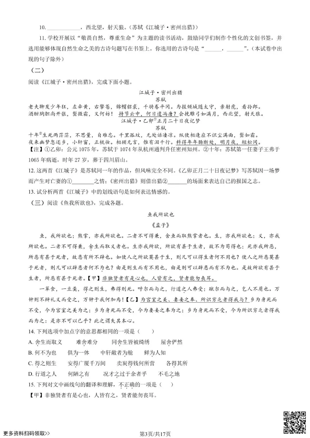 当前位置:首页>考研真题>2026北京昌平二中初三4月月考语文试卷(含答案)