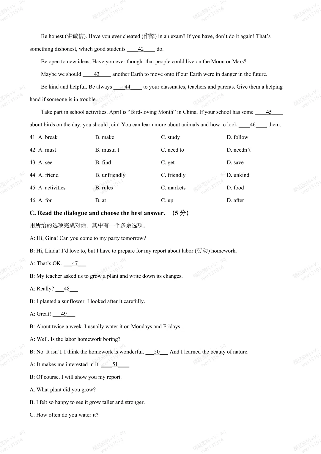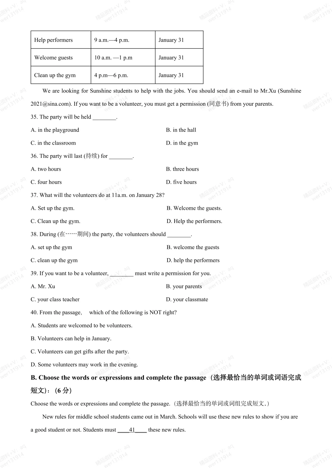 领取本套试卷答案的学生和家长,欢迎入群私信免费领取!