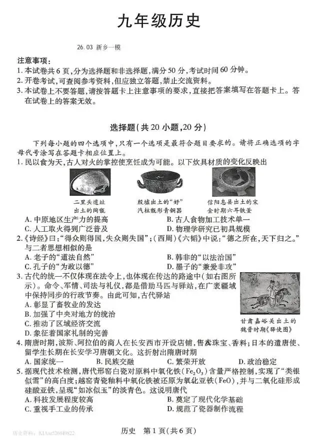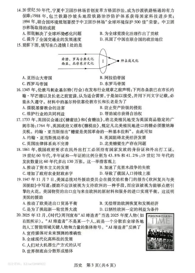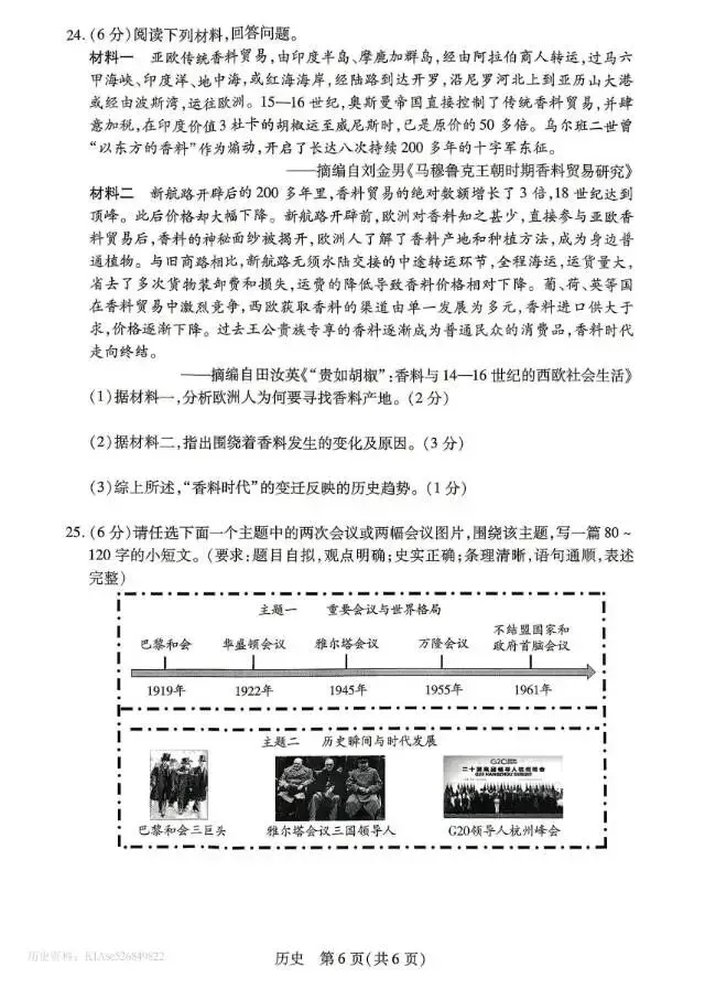 【6小科试卷+答案合集】2026年贵州省普通高中学业水平选择性考试科目适应性测试