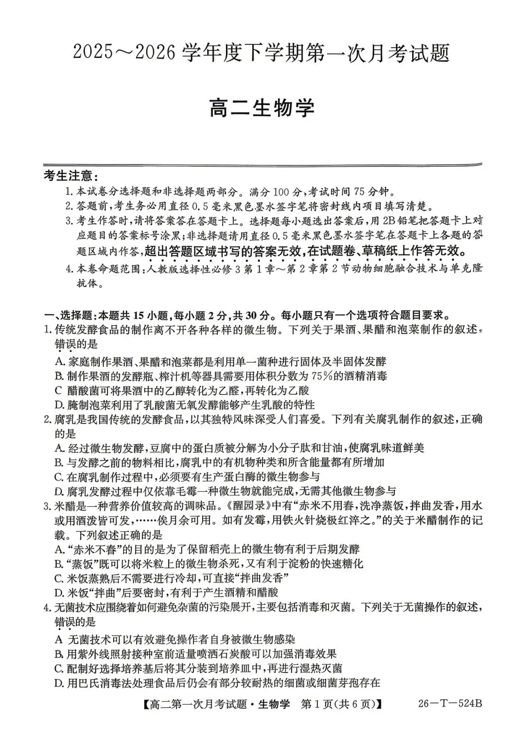 >2026年四平四中高二月考生物试卷