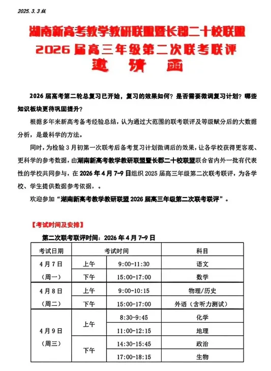 当前位置:首页>考研真题>【试卷+答案】4月7日炎德湖南新高考教研联盟暨长郡二十校联盟2026届高三第二次联考全科及答案汇总