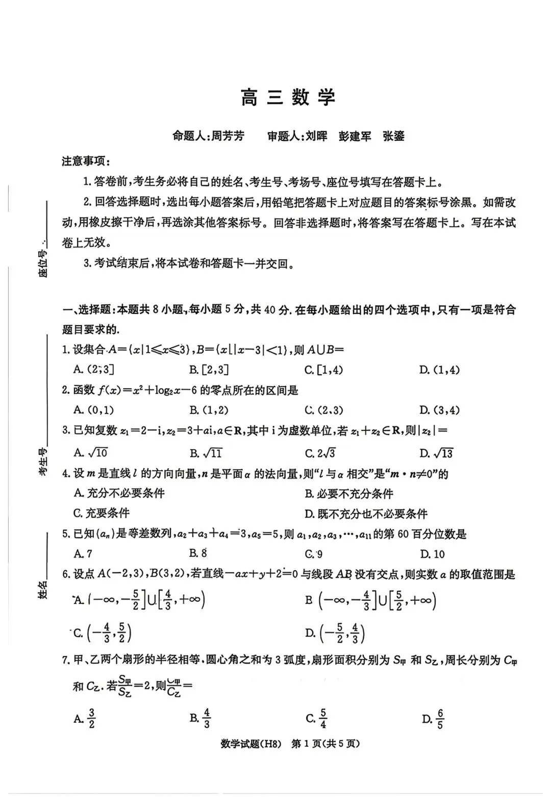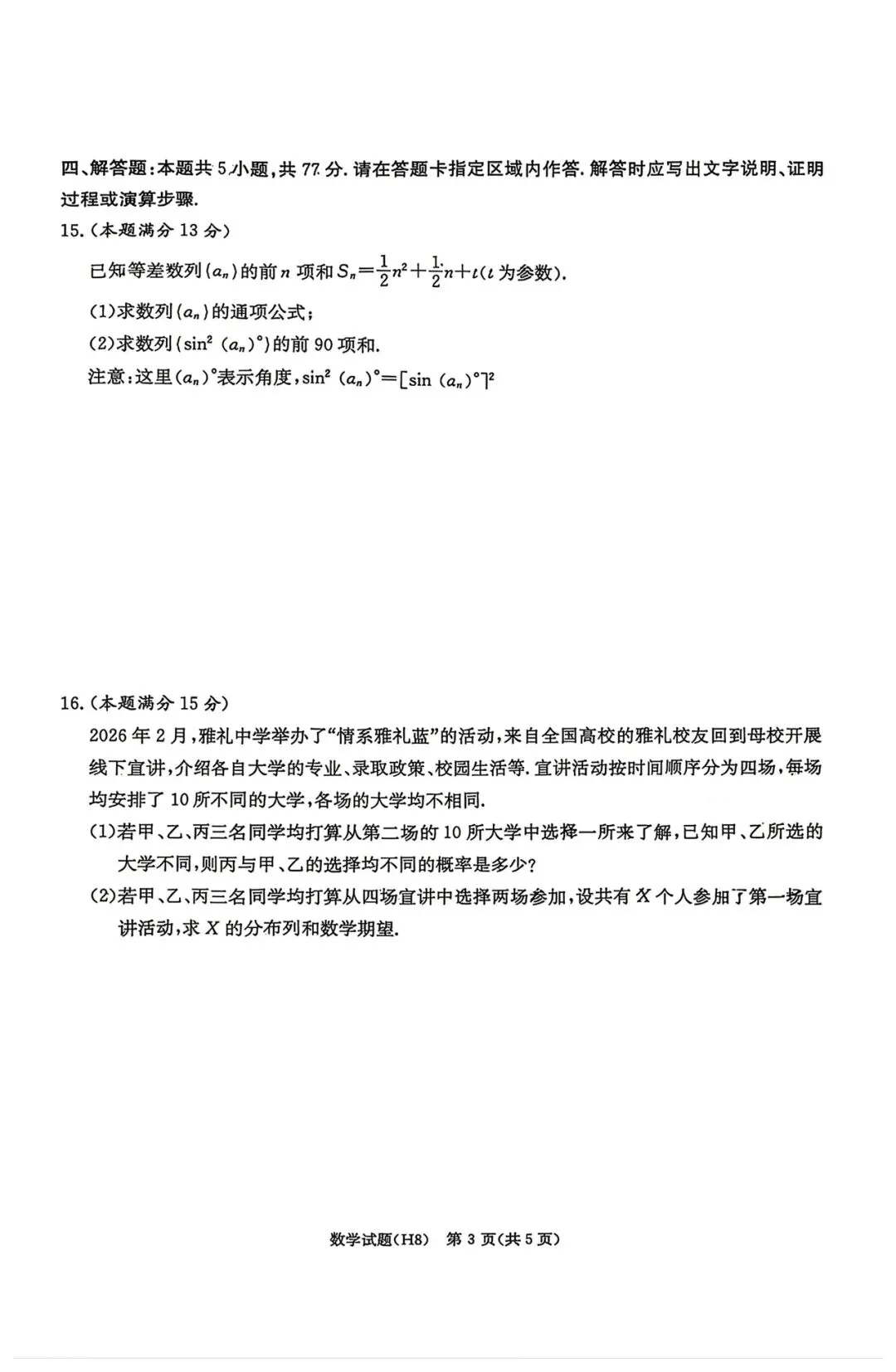 这套试卷,整体难度还是有的。但是几个把关题在考场上还是比较难想的。整体比较温和,具有创新。适合高三朋友们都做一做。感受一下名校雅礼中学的卷子。知己知彼百战百胜!需要其他把关题的详细解析请私信笔者,笔者将进行手写/视频解答!有看不懂或者是有其他方法的方法可以和笔者私信讨论。或者可以添加笔者微信zzw475215000交流!(添加时请注明来意谢谢)