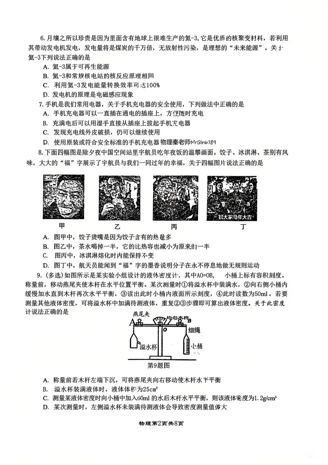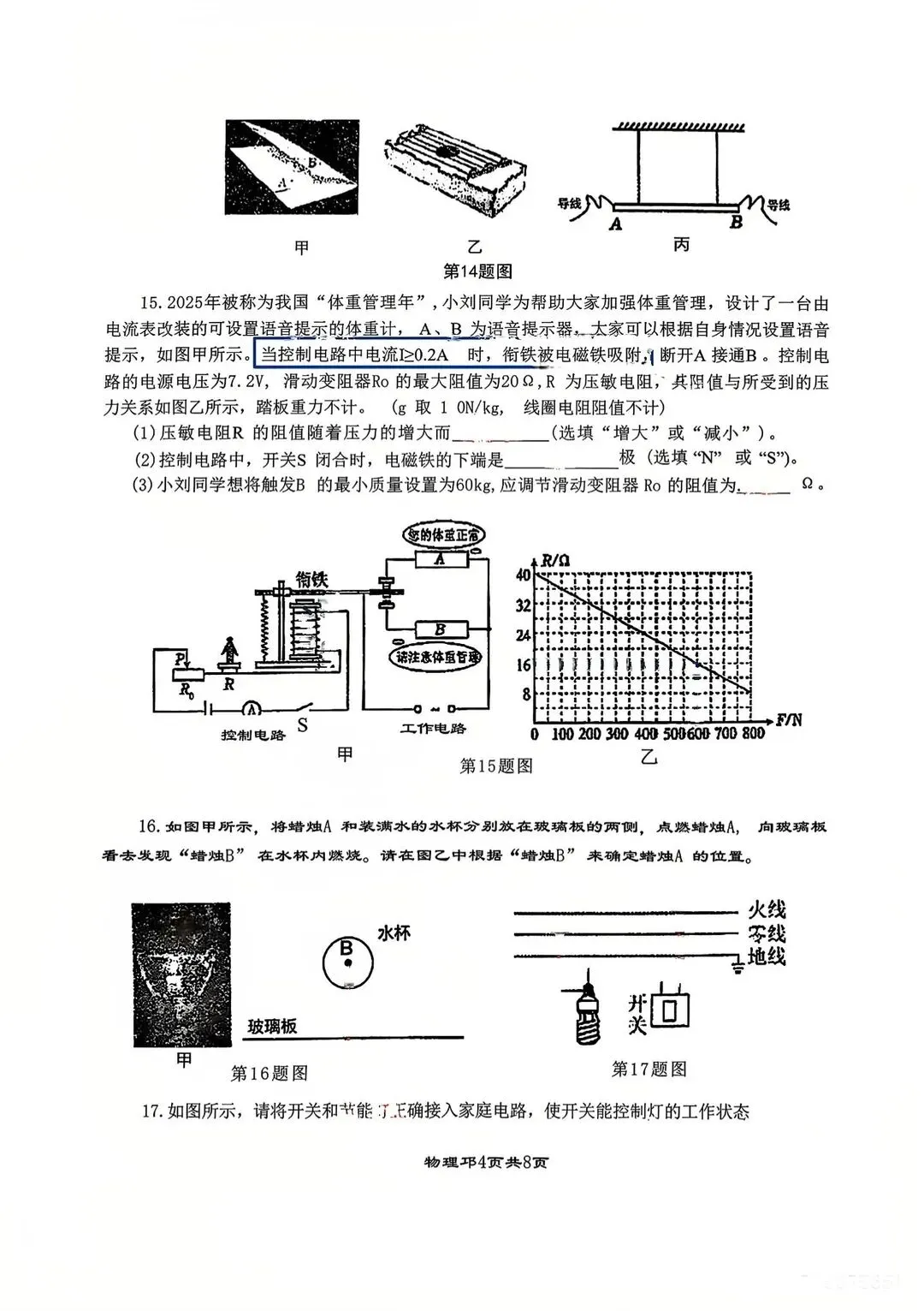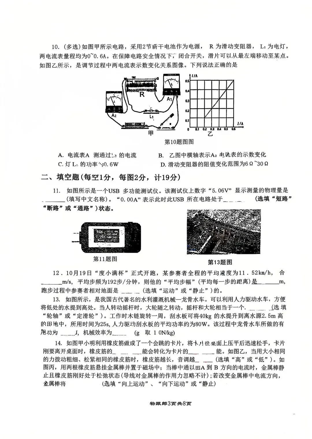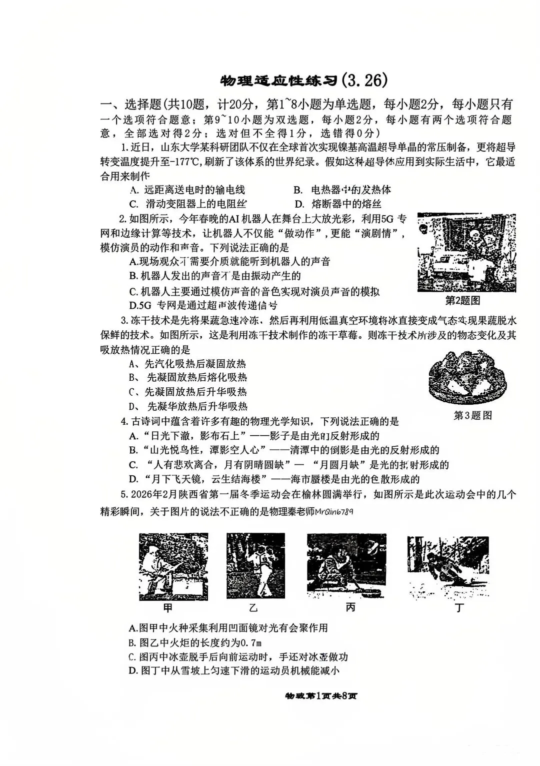 一模真题-2026山东枣庄中考一模物理试卷真题(完整版 + 答案)