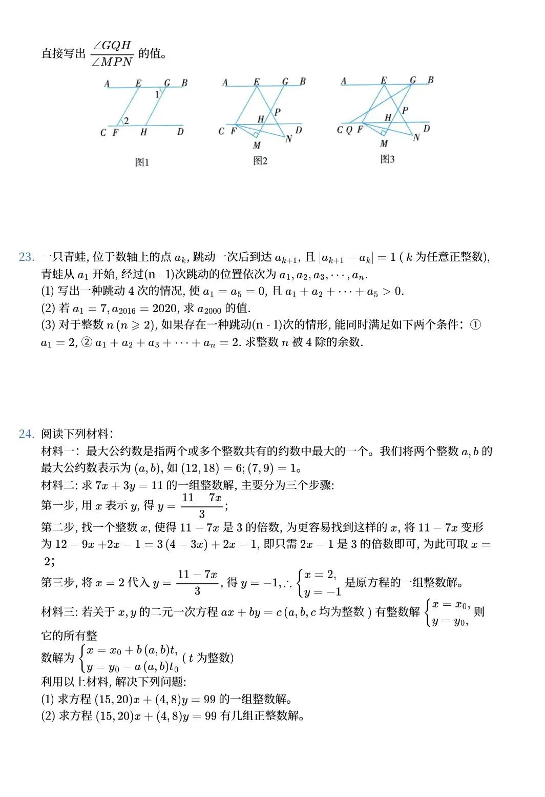 最新 襄阳贯通考试数学试卷(一) 七年级真题
