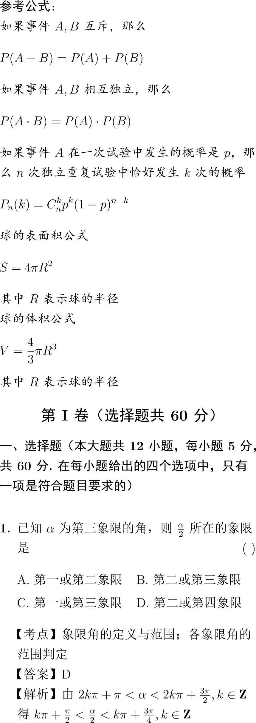 数形结合思想:在解析几何、立体几何、三角函数中充分体现,如第1题的象限角半角范围图、第18题的二面角几何作图。