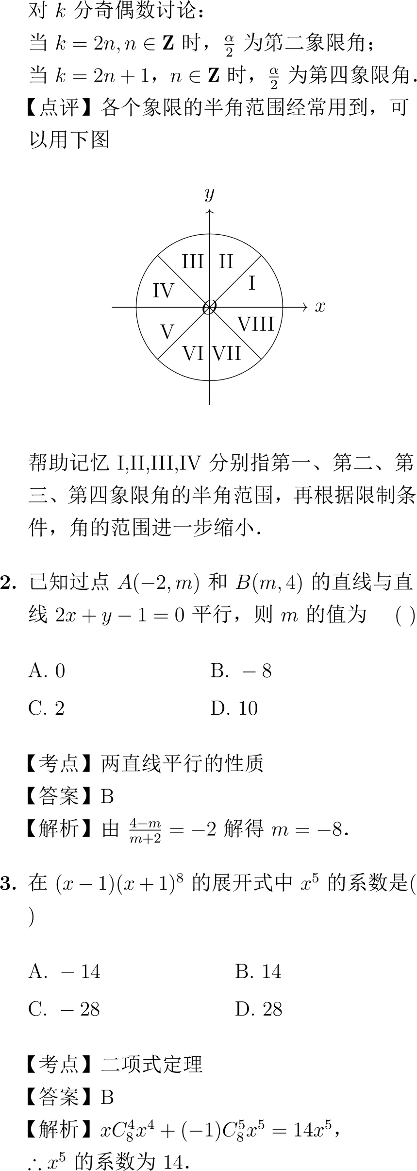 分类讨论思想:在第1题的象限角讨论、第11题的空间平面分类计数中体现。