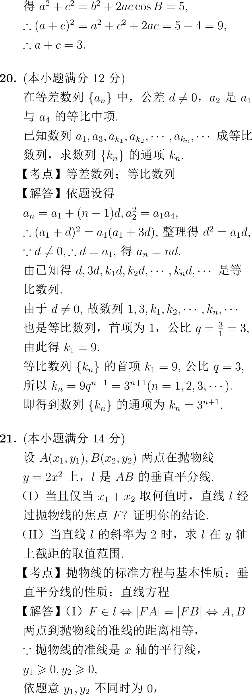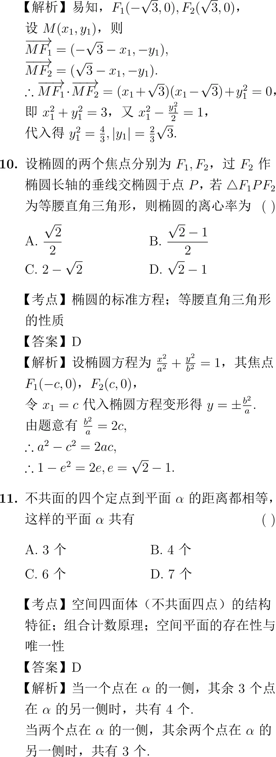 解析几何:第9题双曲线、第10题椭圆、第21题抛物线,围绕圆锥曲线的定义、性质、直线与曲线位置关系展开,第21题的垂直平分线问题是解析几何的经典创新题型。