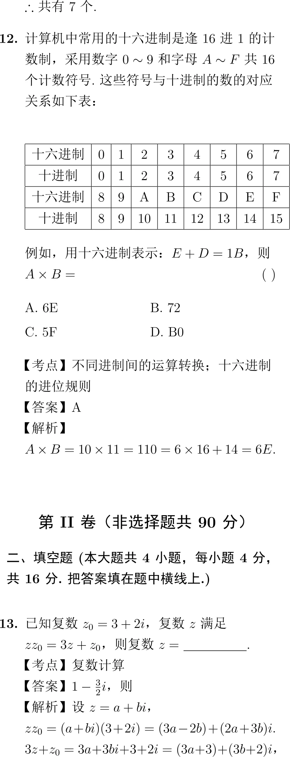 选择题(12题,60分):覆盖函数、三角、立体几何、解析几何、数列、导数、概率、二项式定理等基础内容,以基础题和中档题为主,侧重运算能力与概念理解。
