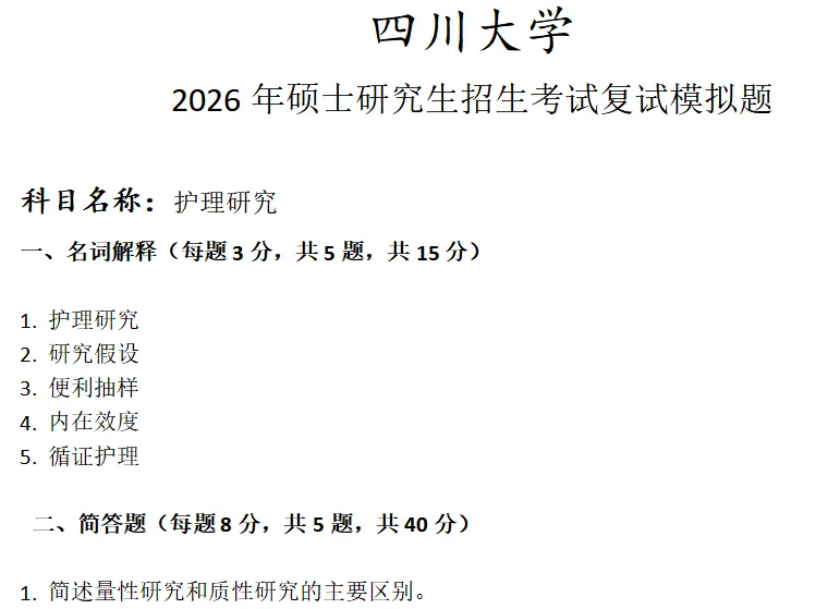 >四川大学护理研究考研复试真题模拟