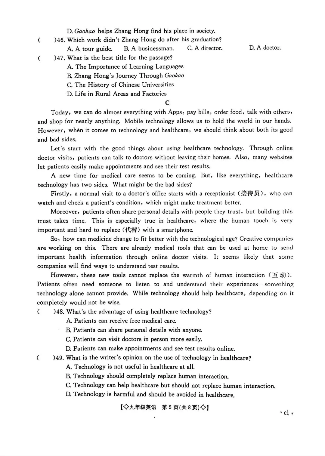 天津历年高考英语试卷真题