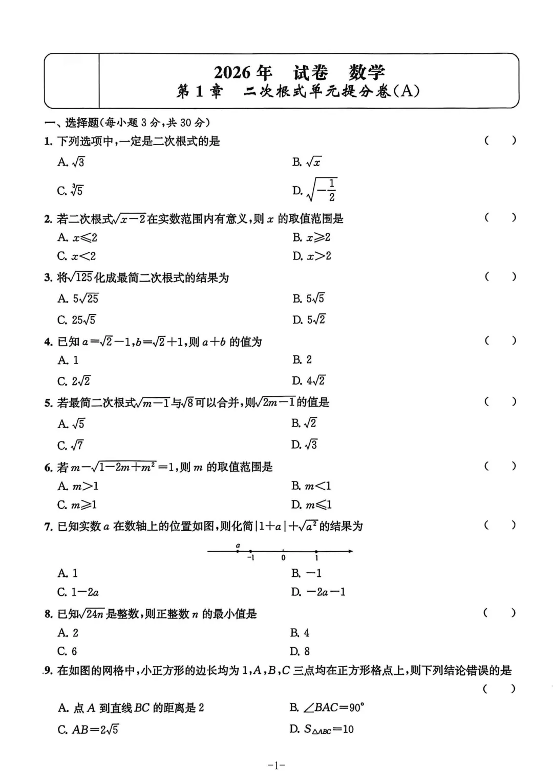 >【金试卷A-八下数学ZJ】浙江专用2026新版八年级下册浙教版数学金单元期中期末提分卷A4版 附答案详解