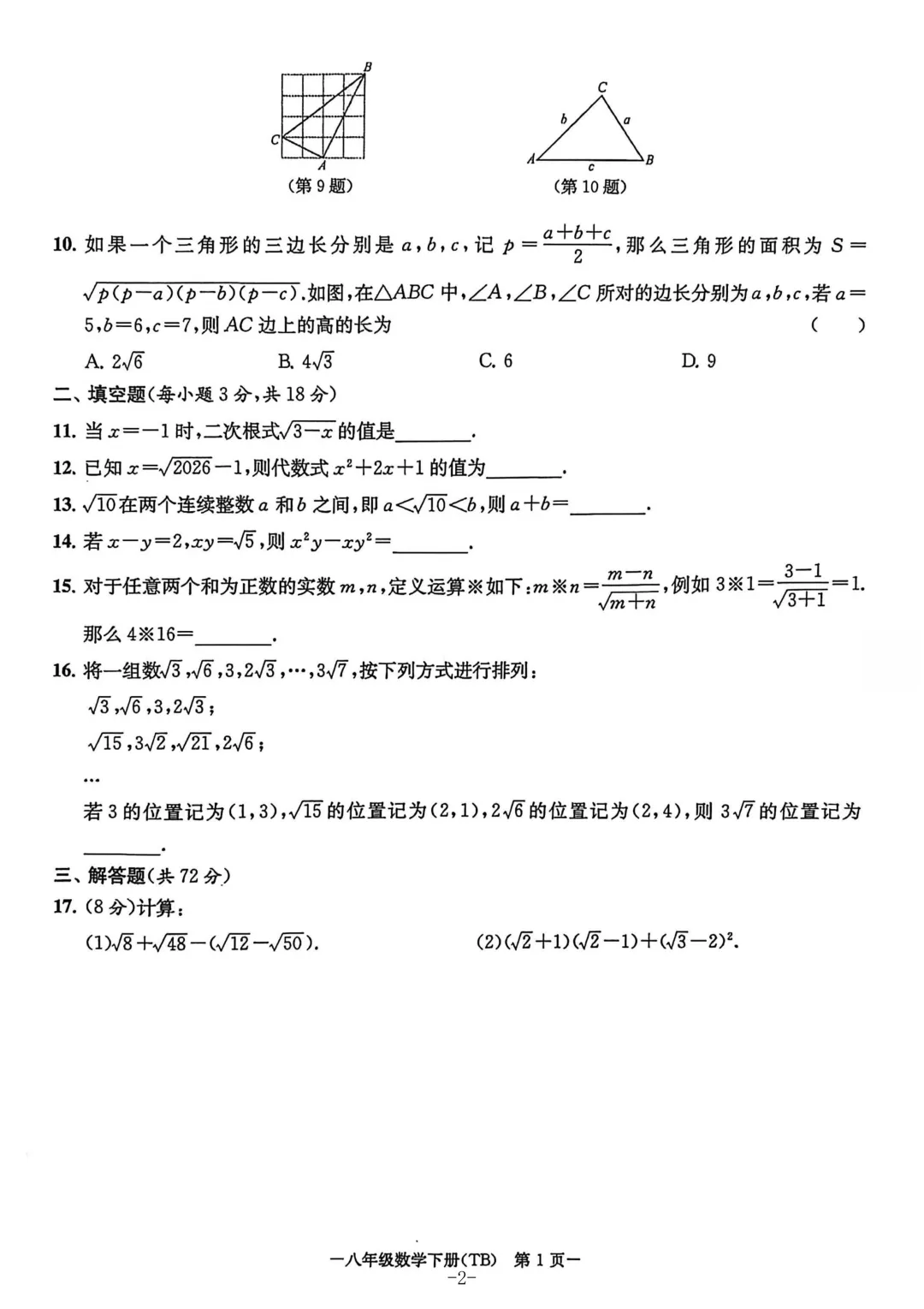 三年级数学第二学期期中试卷,测试一下