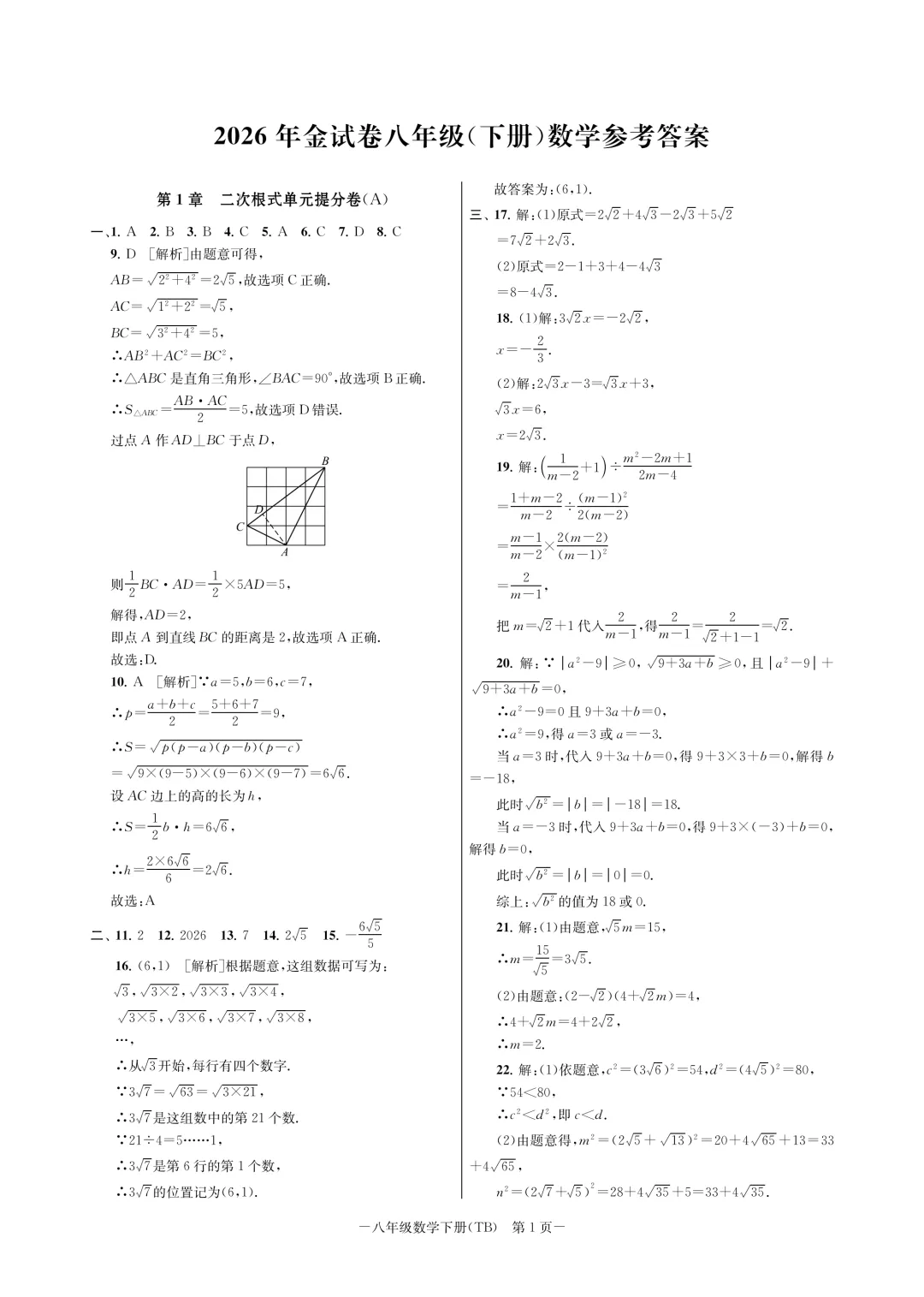 【金试卷A-八下数学ZJ】浙江专用2026新版八年级下册浙教版数学金试卷单元期中期末复习提分卷A4版 附答案详解