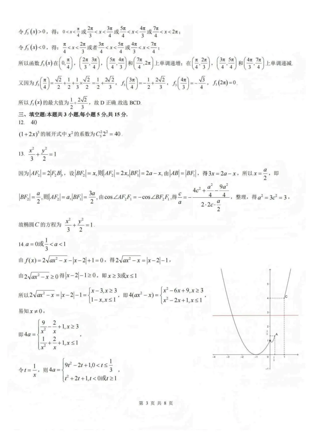 >【最新试卷】2026届山西吕梁高三第二次模拟调研数学试卷+答案