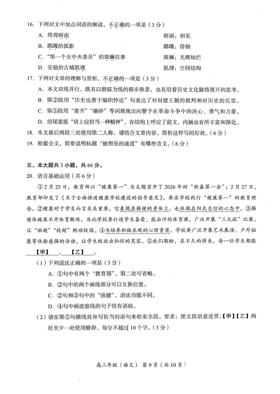 >2026北京海淀高三一模语文试卷