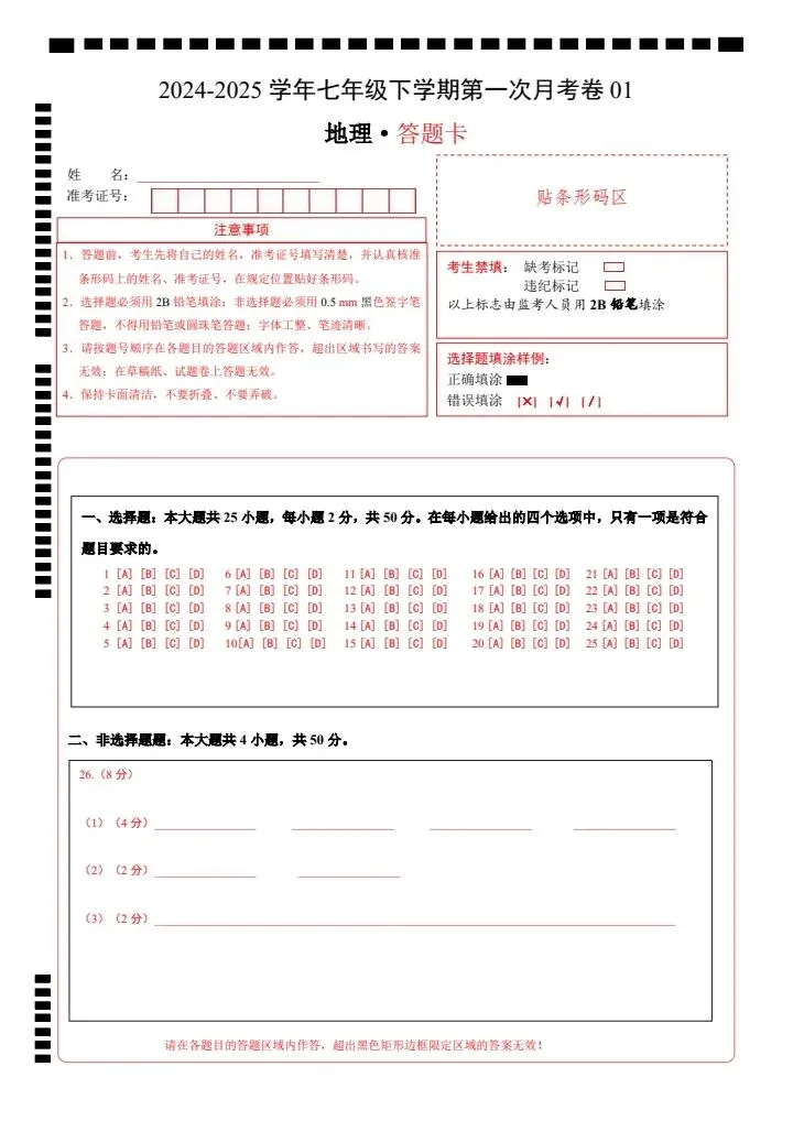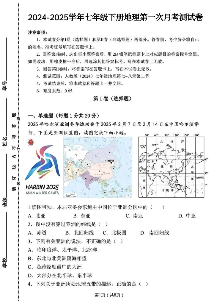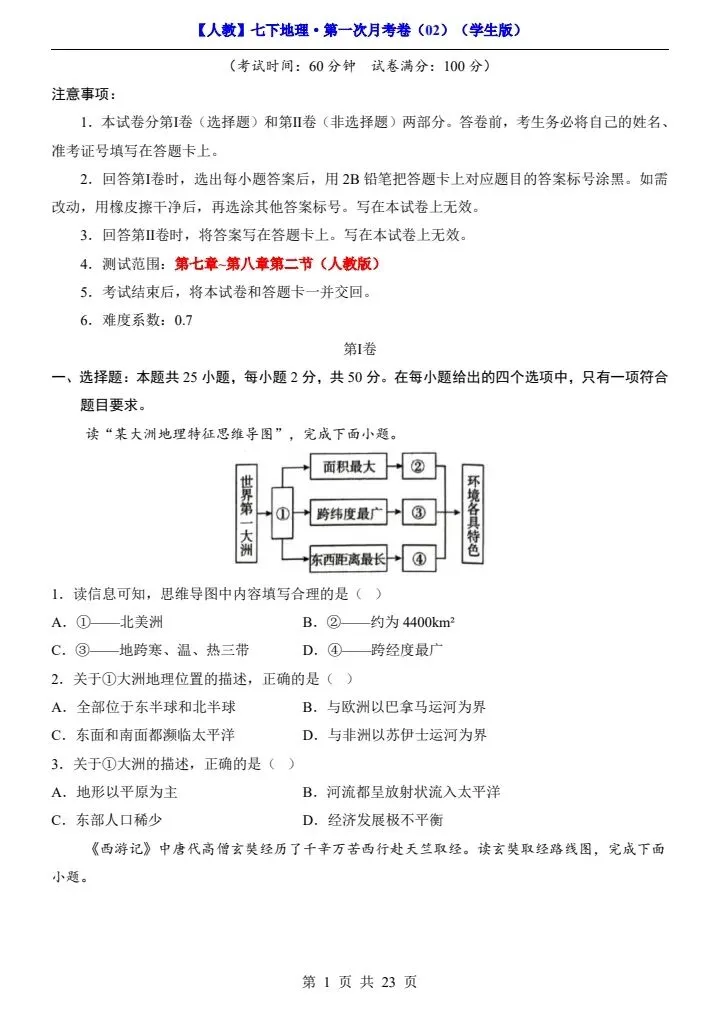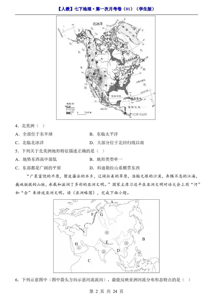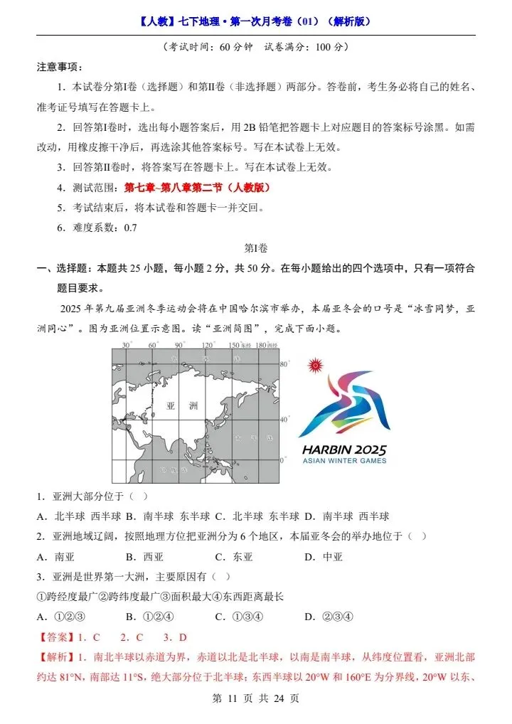 今日分享2026春七下人教地理第一次月考试卷4套(含答案)完整电子版!高清可打印,每日轻量练习,拒绝无效刷题,用系统化资料筑牢学科基础,让假期成为提升的黄金期,开学轻松领跑。