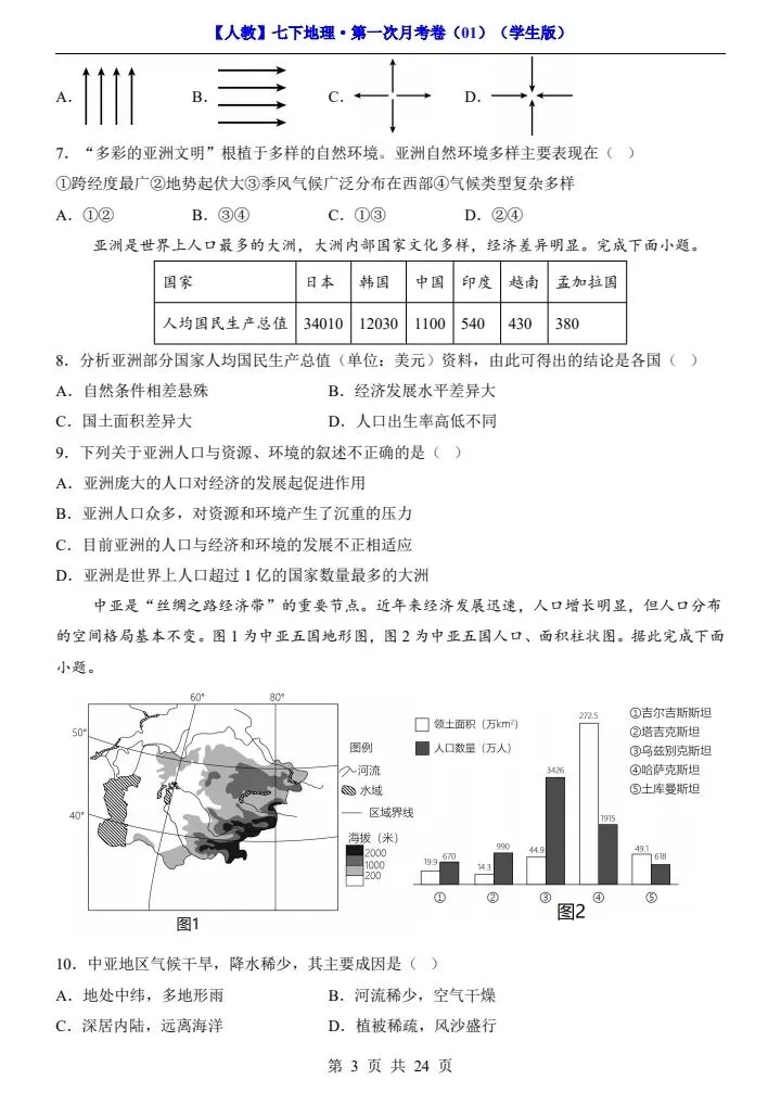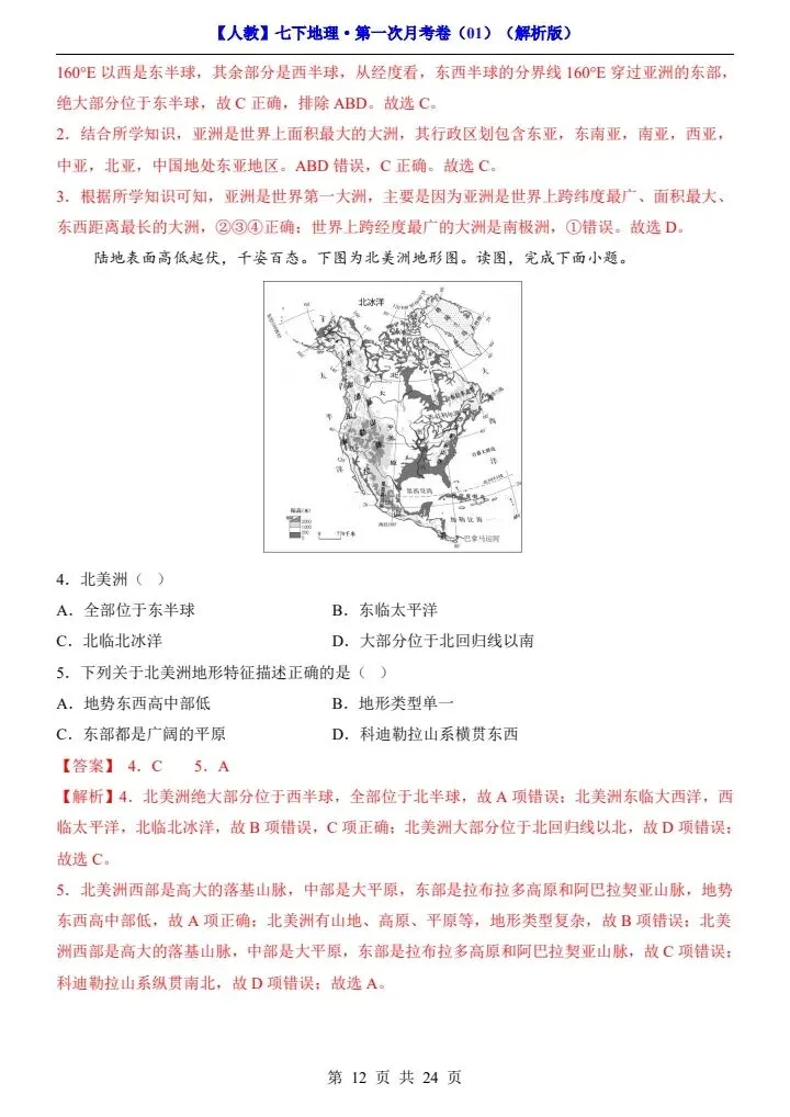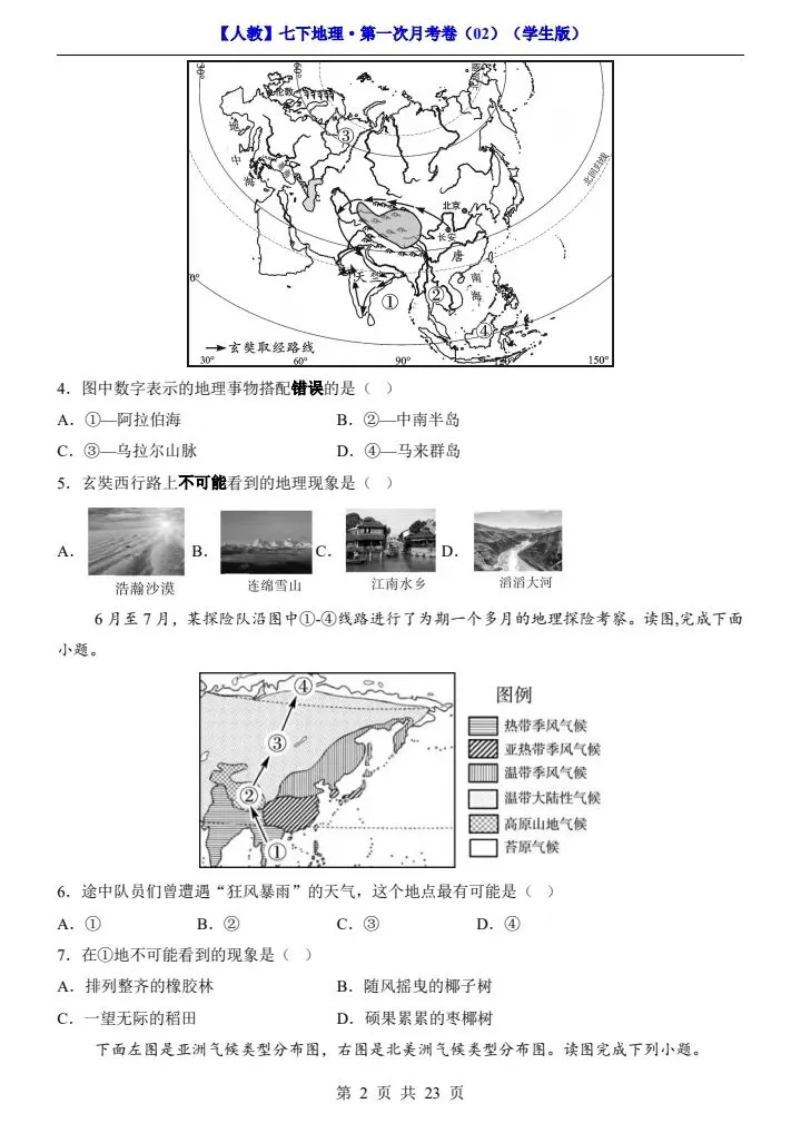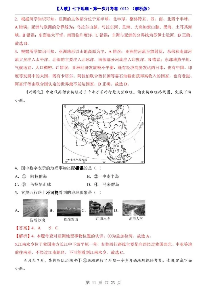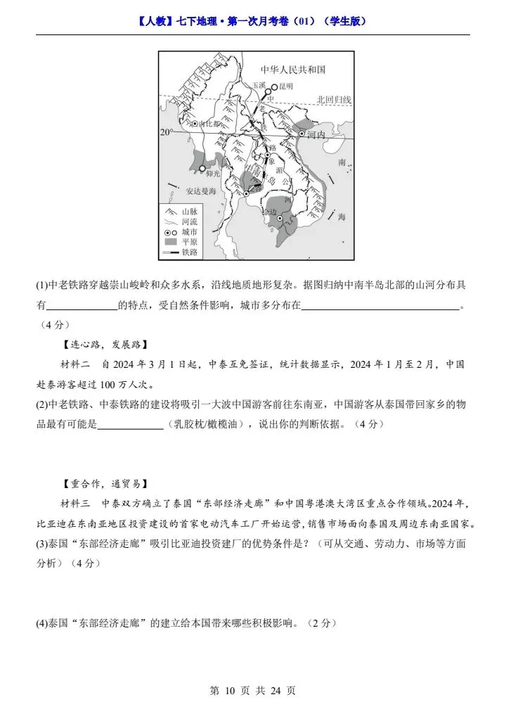 今日分享2026春七下人教地理第一次月考试卷4套(含答案)完整电子版!高清可打印,每日轻量练习,拒绝无效刷题,用系统化资料筑牢学科基础,让假期成为提升的黄金期,开学轻松领跑。