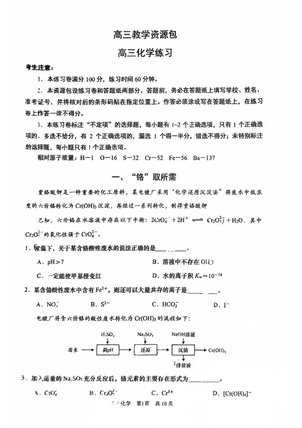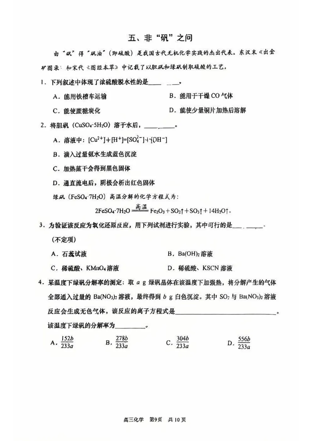 当前位置:首页>考研真题>2026上海浦东新区高三二模化学试卷+答案