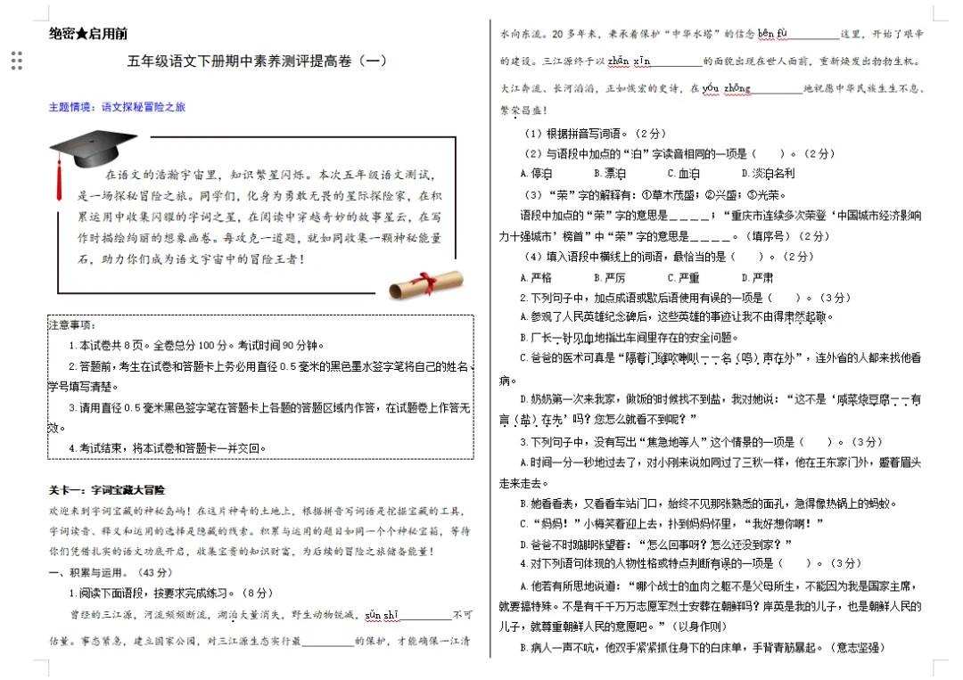 我用夸克网盘给你分享了「五下语文提高卷01」,点击链接或复制整段内容,打开「夸克APP」即可获取。