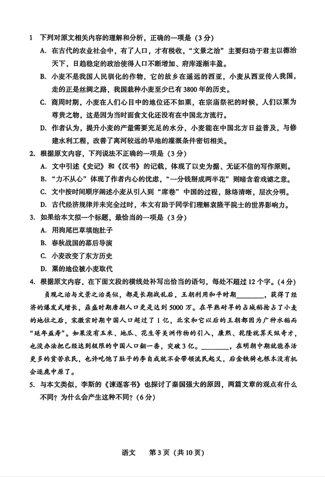 2026上海松江区高三二模语文试卷+答案!