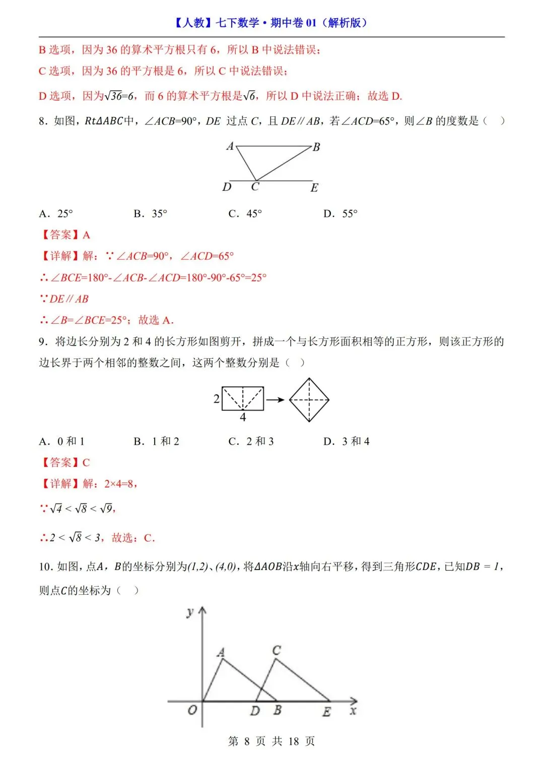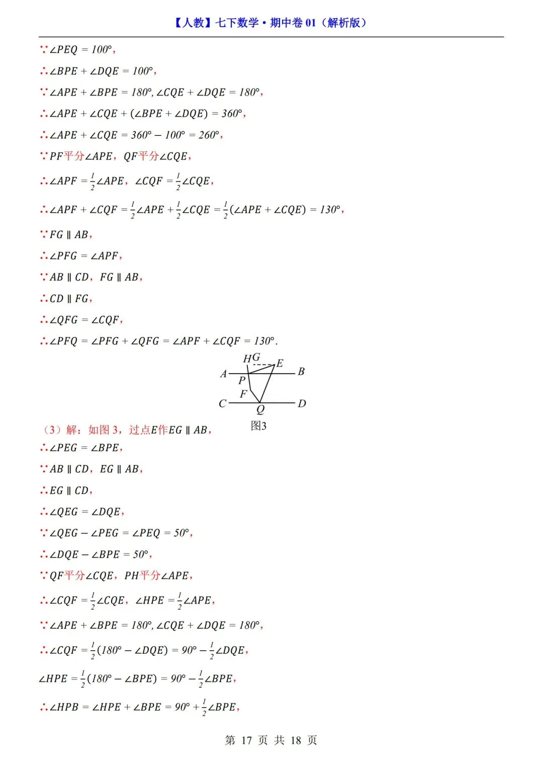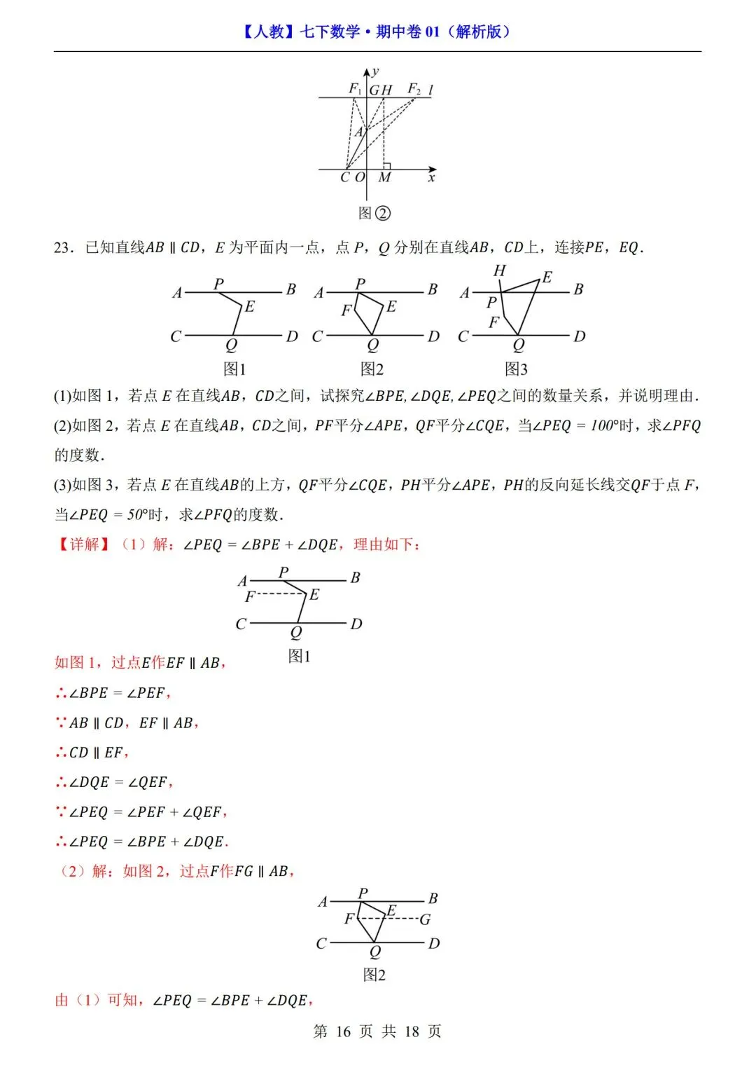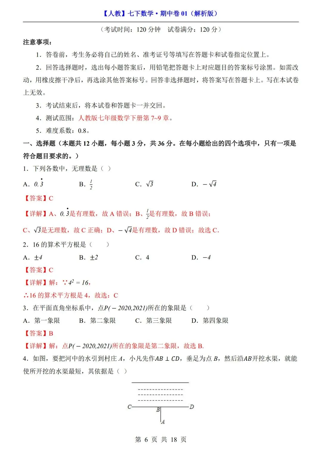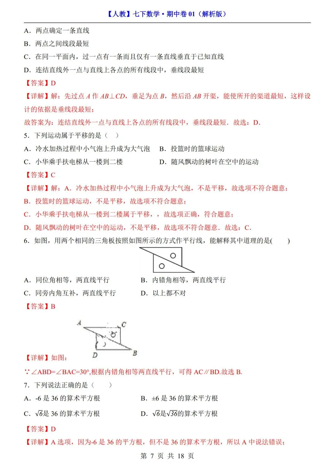 >数学人教版-七年级下册期中试卷+答案|可打印