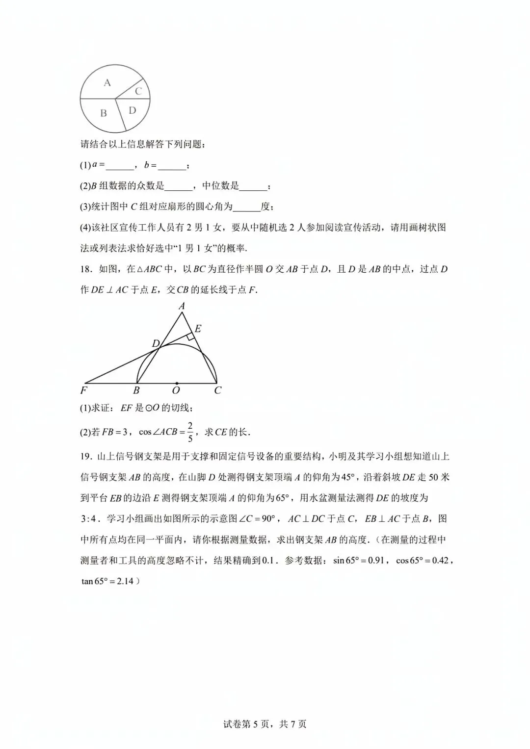 新鲜出炉!2025净月高新区数学一模试卷+详细解析,初三生必刷!