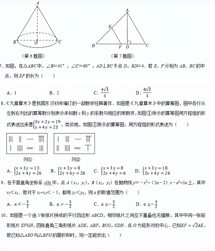 2026年浙江中考数学模拟试卷(省统一命题卷二)及参考答案