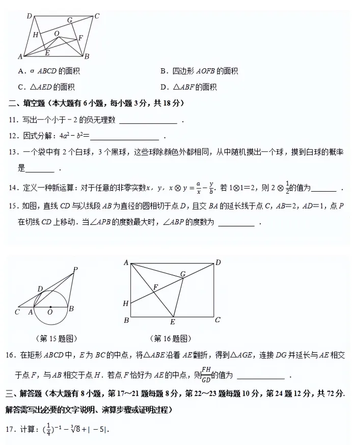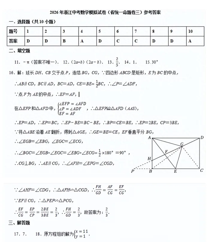 >2026年浙江中考《数学》模拟试卷(省统一命题卷三).