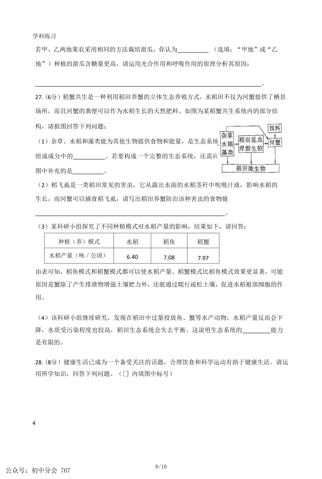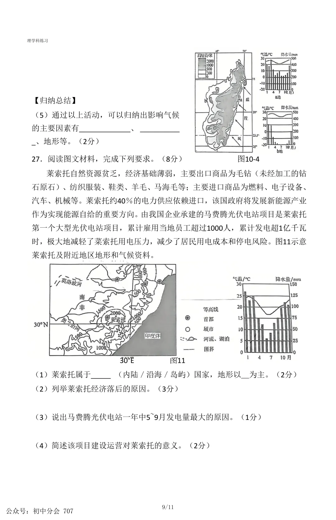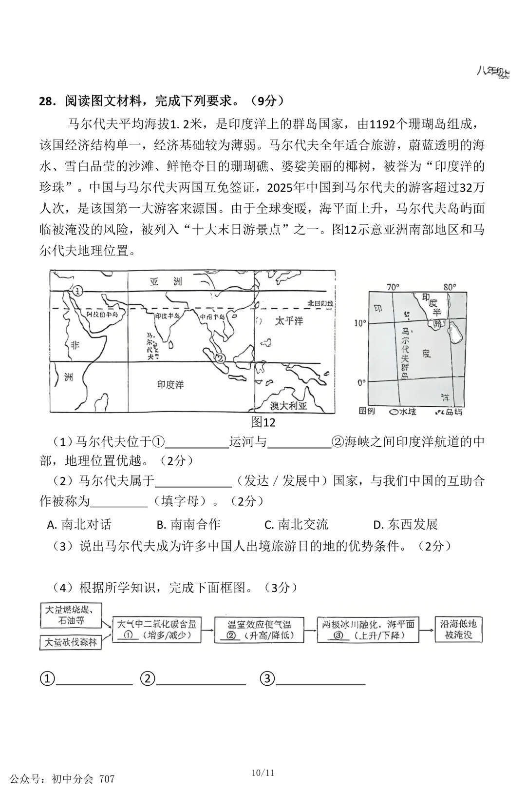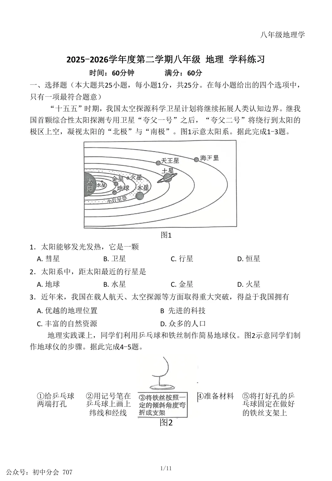 2026.3石家庄市43中初二地生模考试卷及答案(可打印)