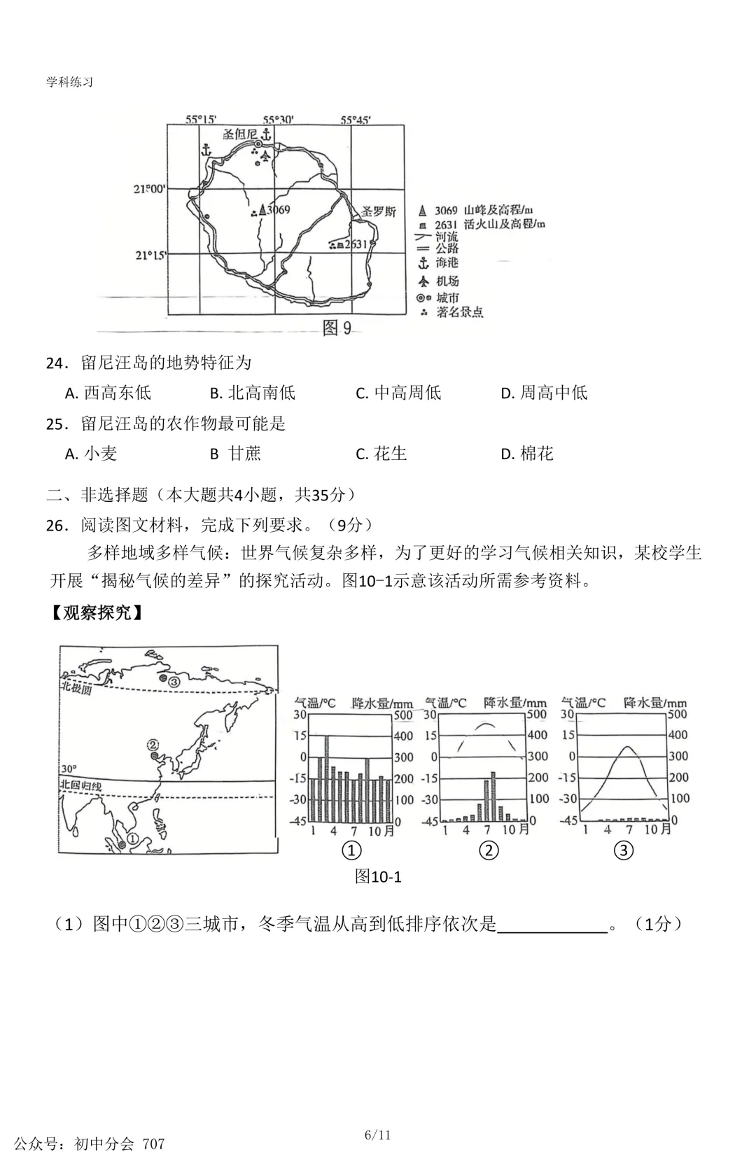 2026.3河北省初中学业水平摸底考试地生试卷及答案