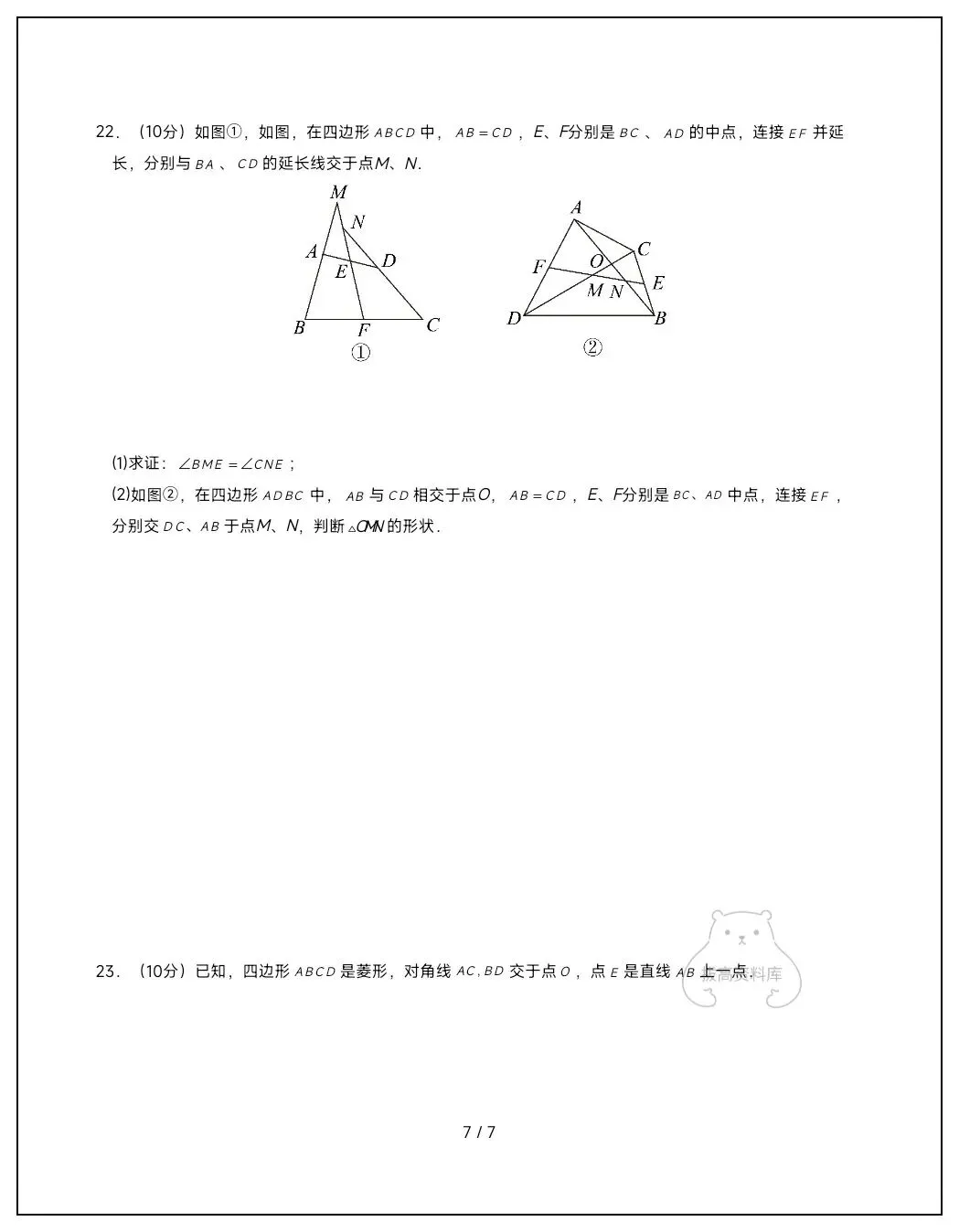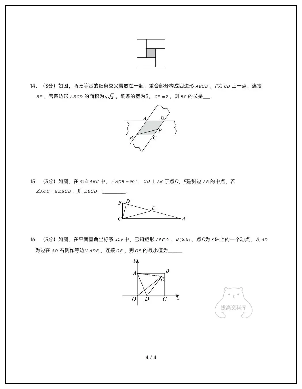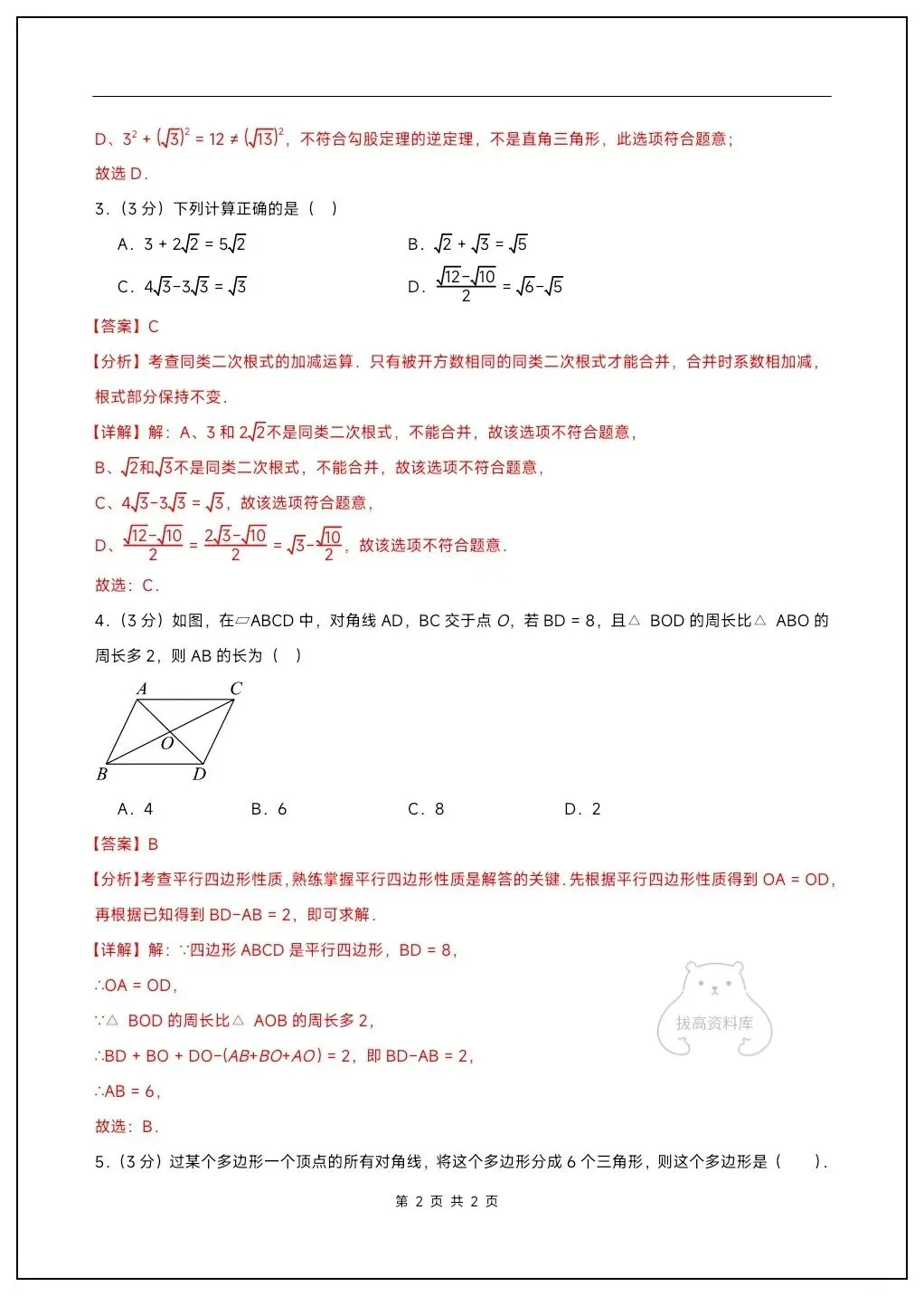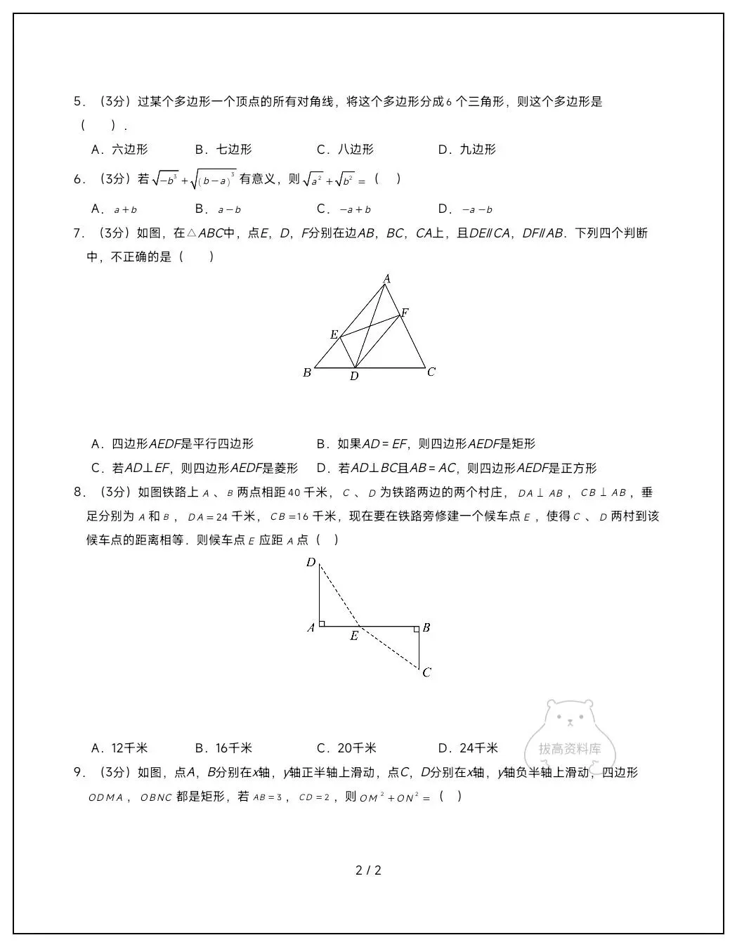 2026八年级数学下册期中模拟试卷+答案(可下载打印)