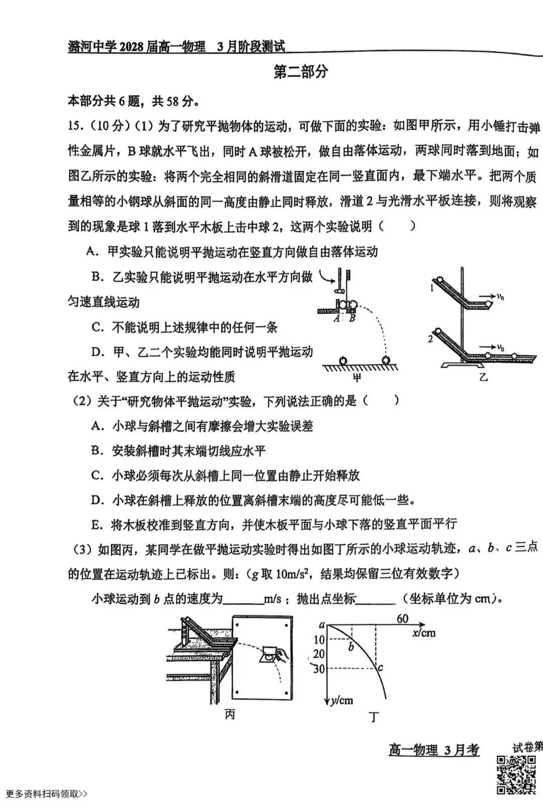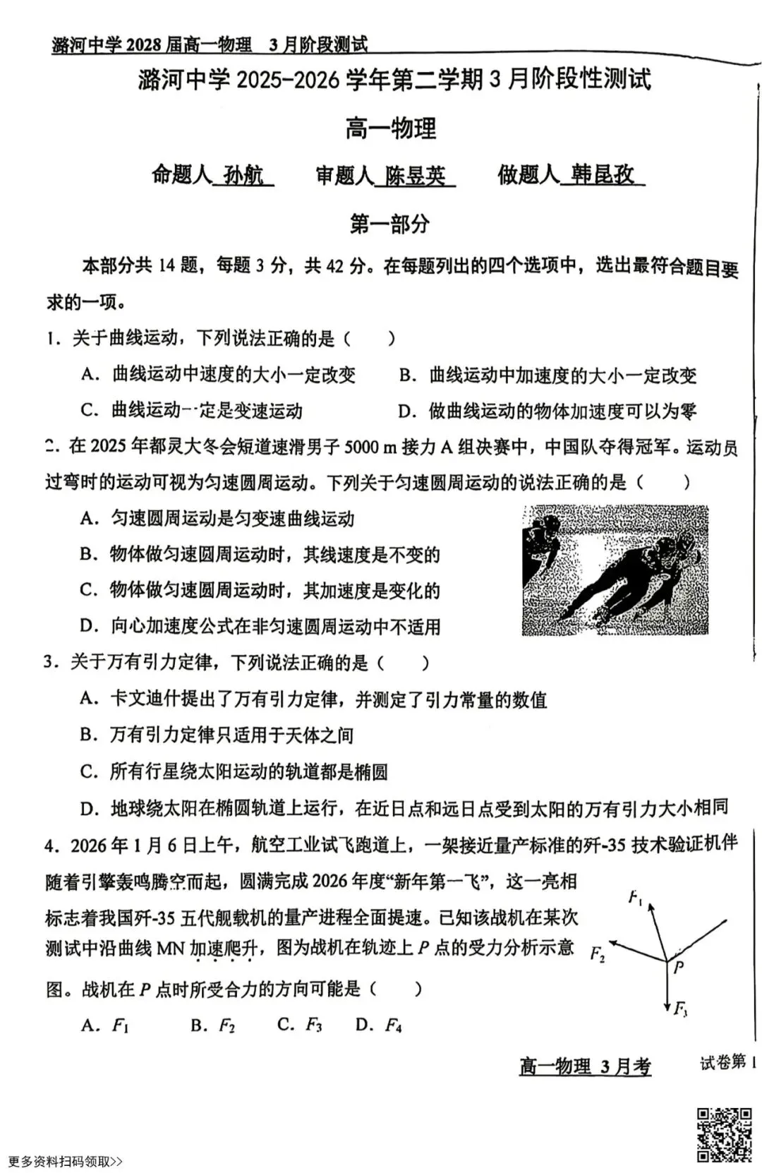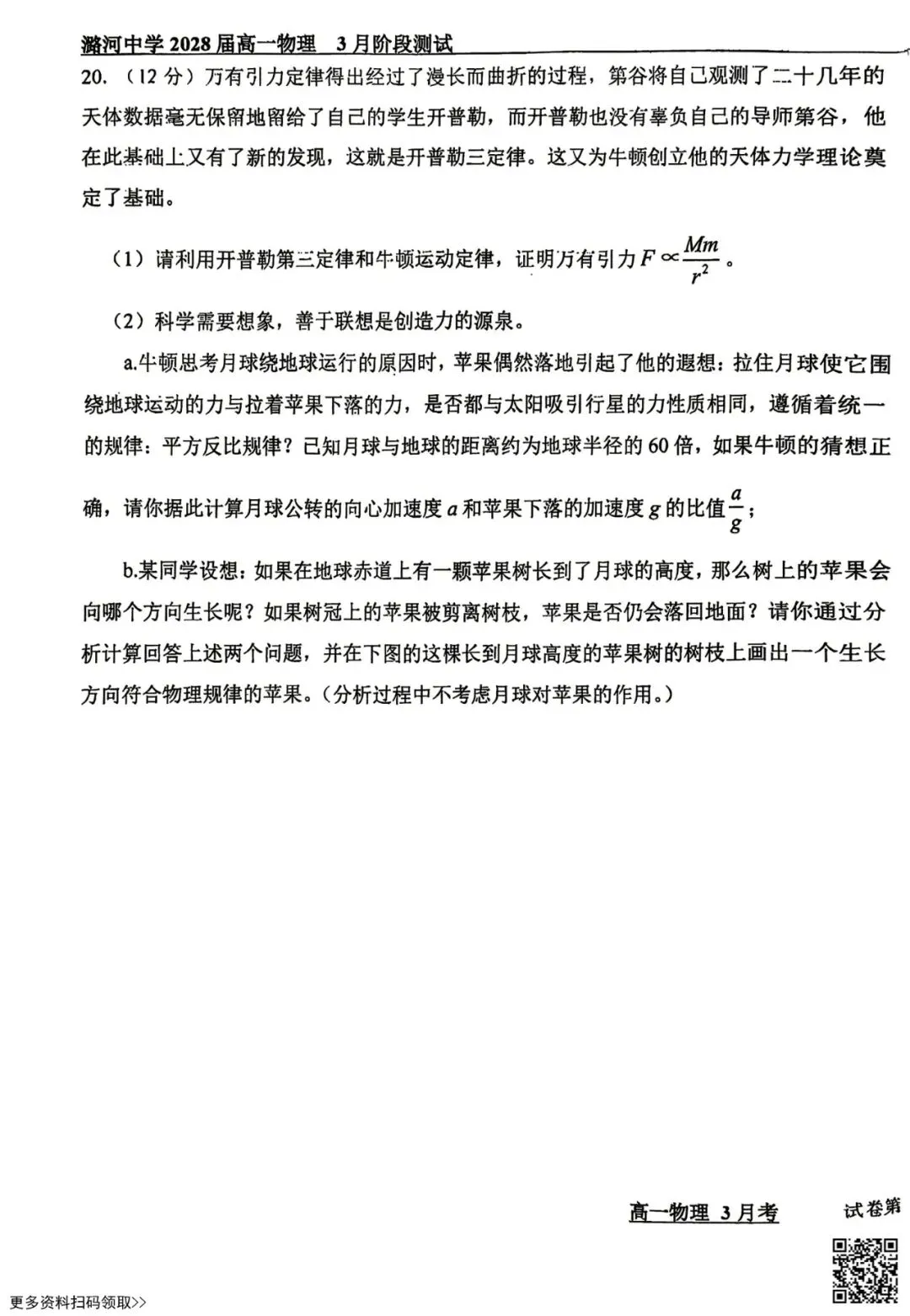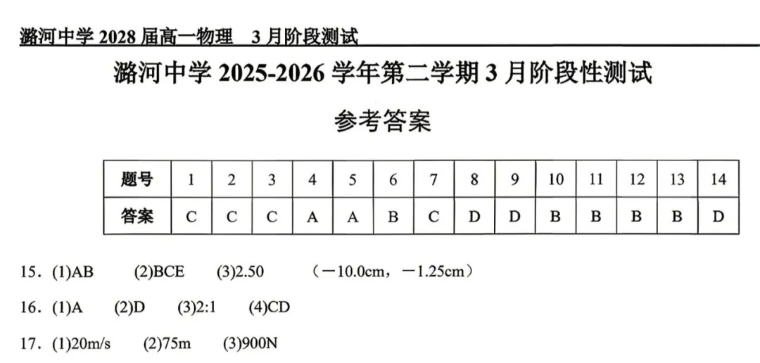 今天给大家分享的是2026北京潞河中学高一3月月考物理试卷(含答案),其他区域或学校的学生都可以练一练。近期会持续分享,欢迎大家多多关注,也可以把我们分享给更多人哦。