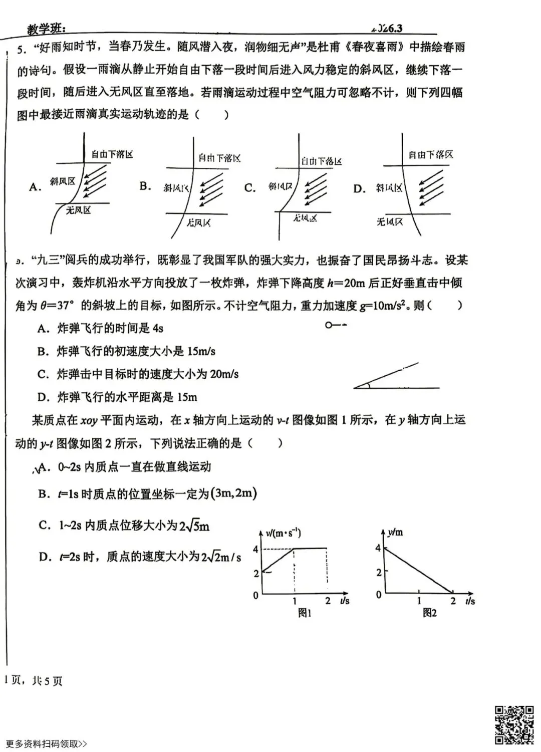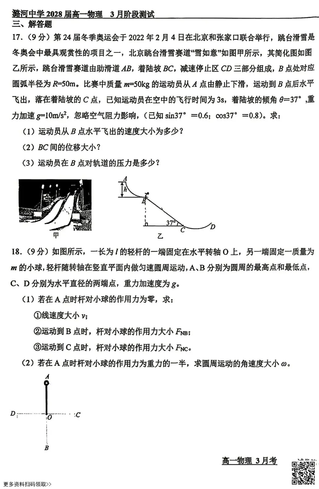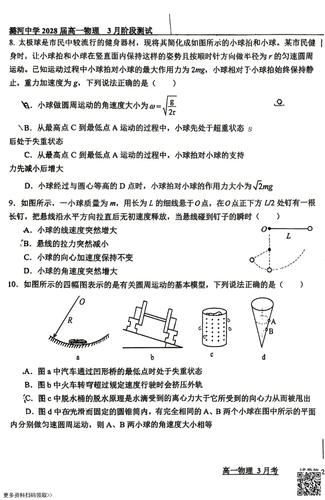 今天给大家分享的是2026北京潞河中学高一3月月考物理试卷(含答案),其他区域或学校的学生都可以练一练。近期会持续分享,欢迎大家多多关注,也可以把我们分享给更多人哦。