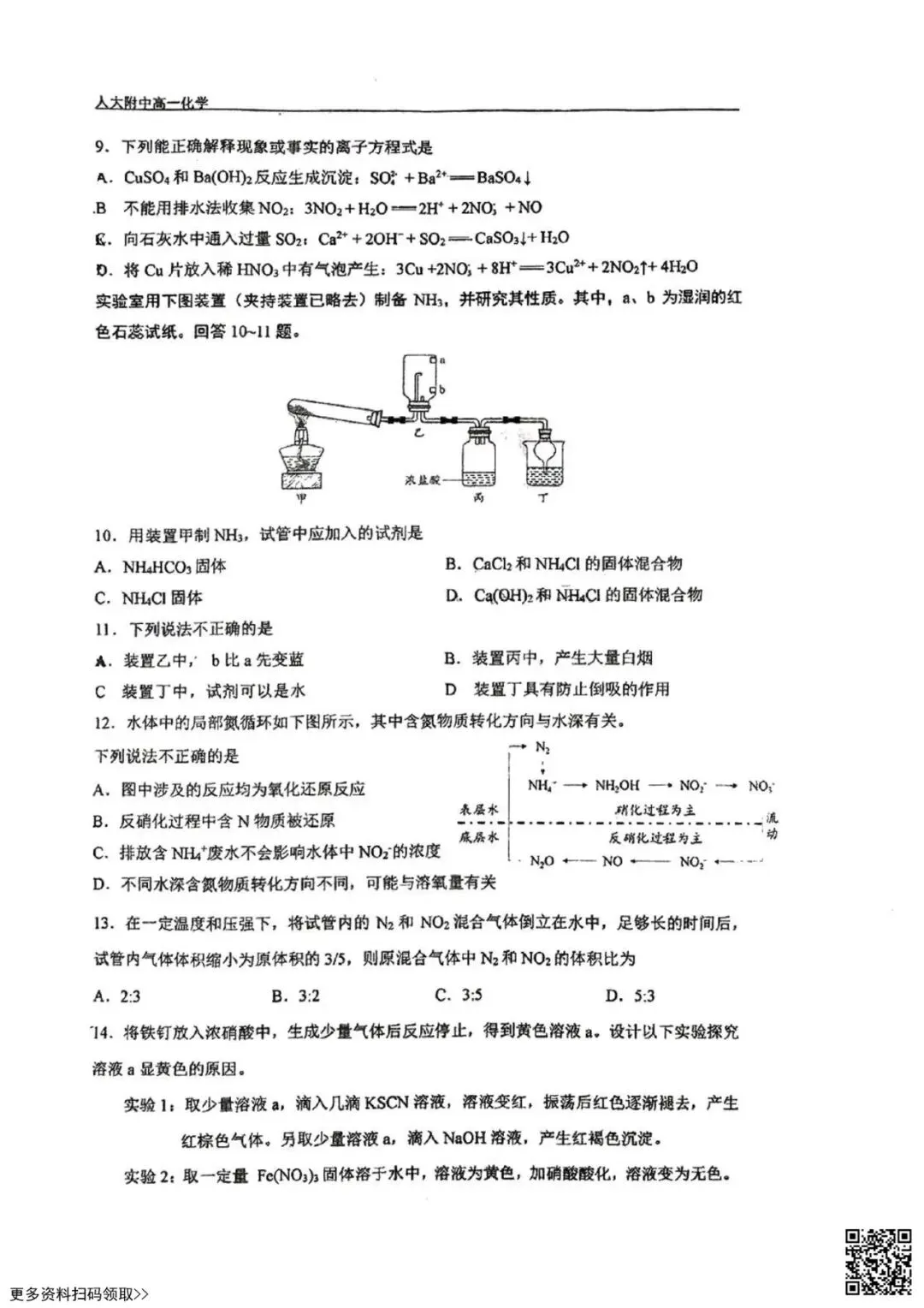 当前位置:首页>考研真题>2026北京人大附中高一3月月考化学试卷(含答案)