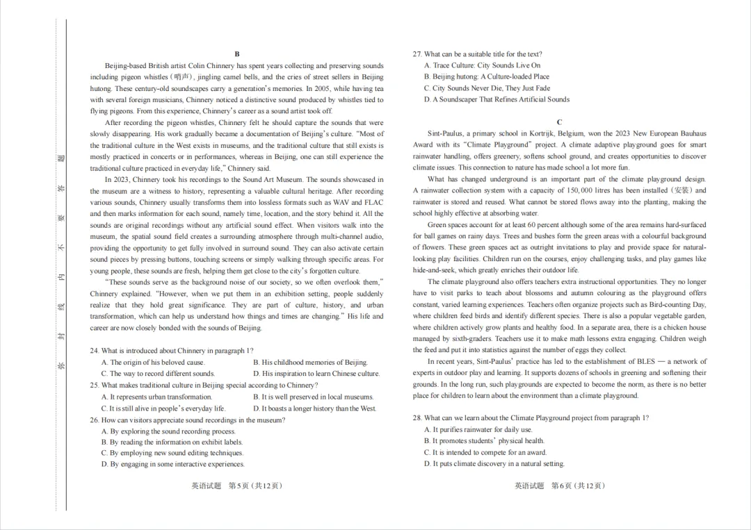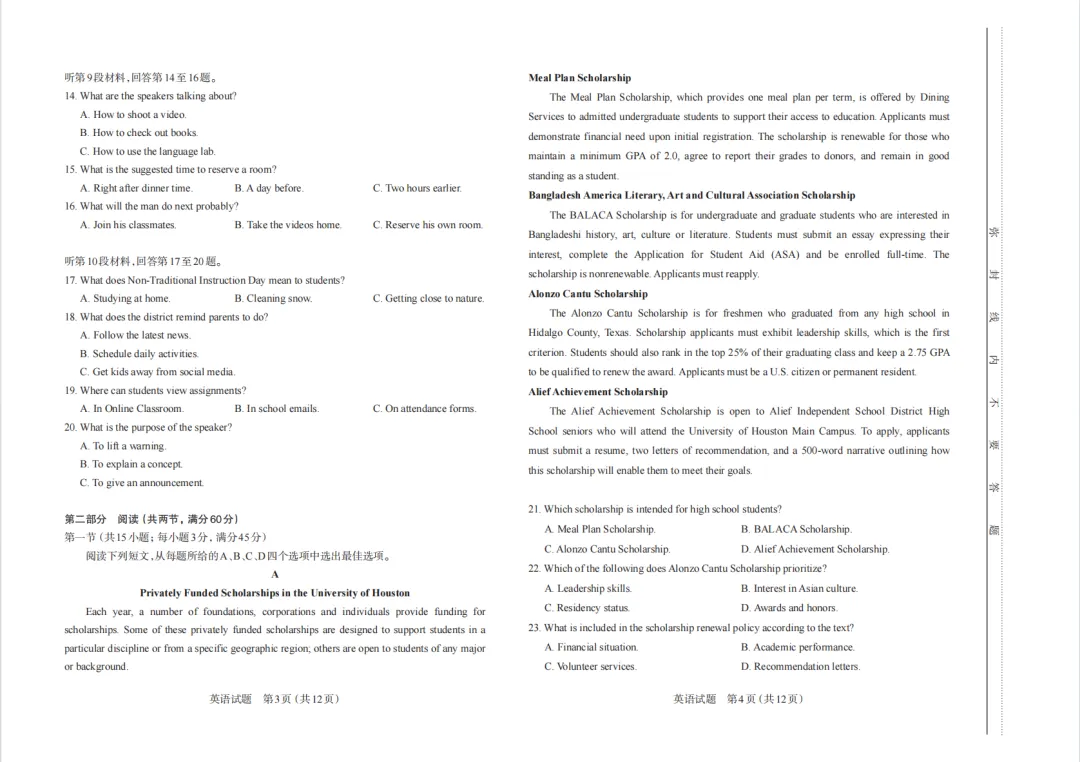 【试卷+答案】2026年河南省普通高中学业水平选择性考试适应性测试