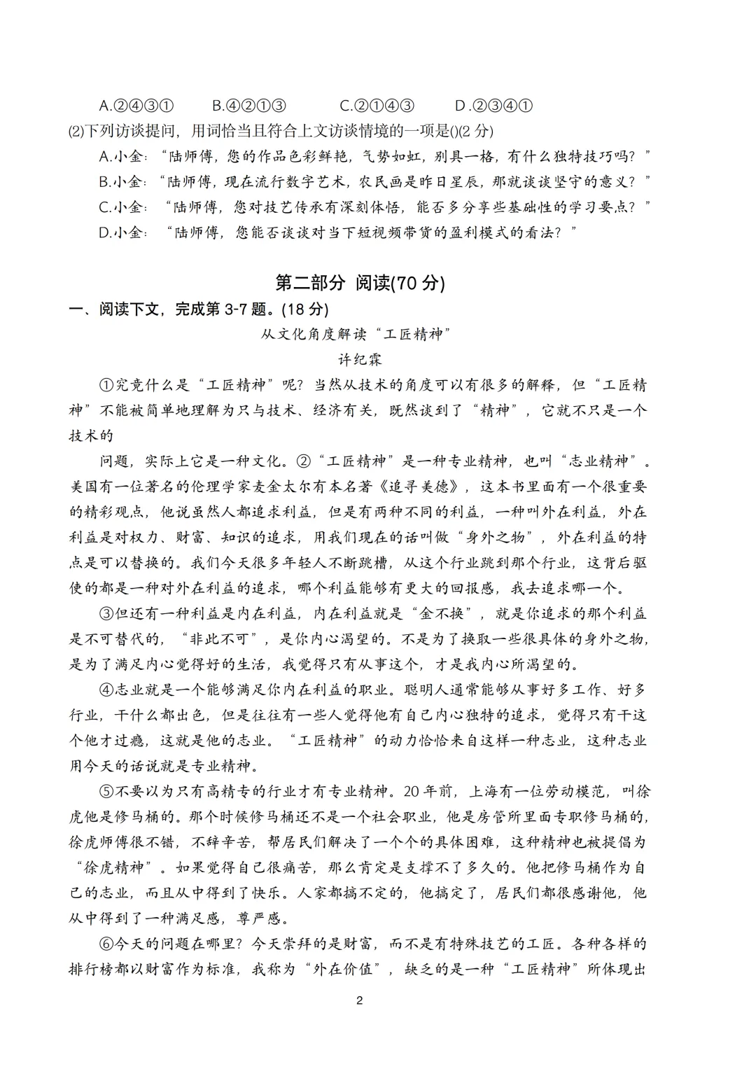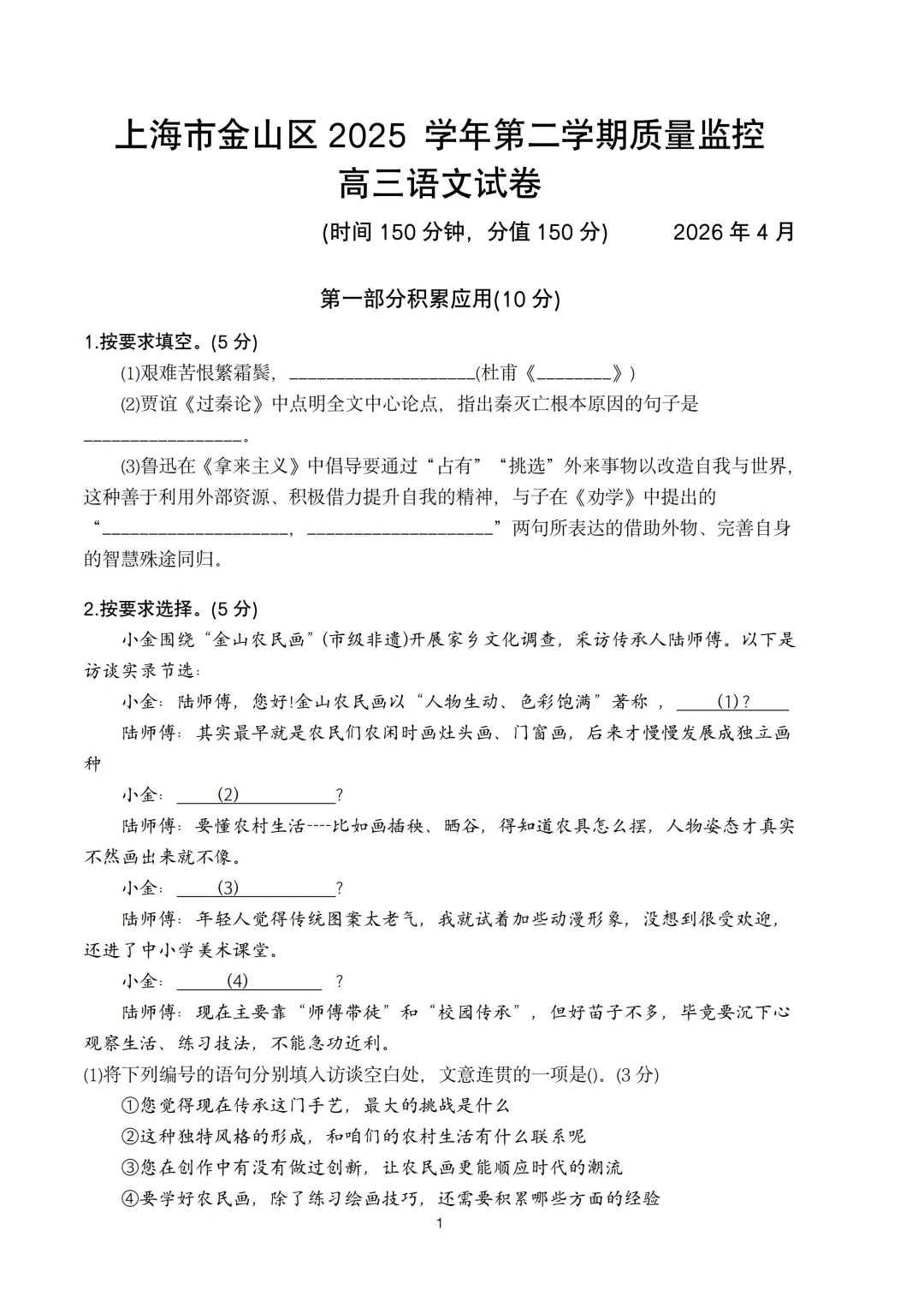 通过网盘分享的文件:2026届上海市金山区高三二模语文试卷&答案