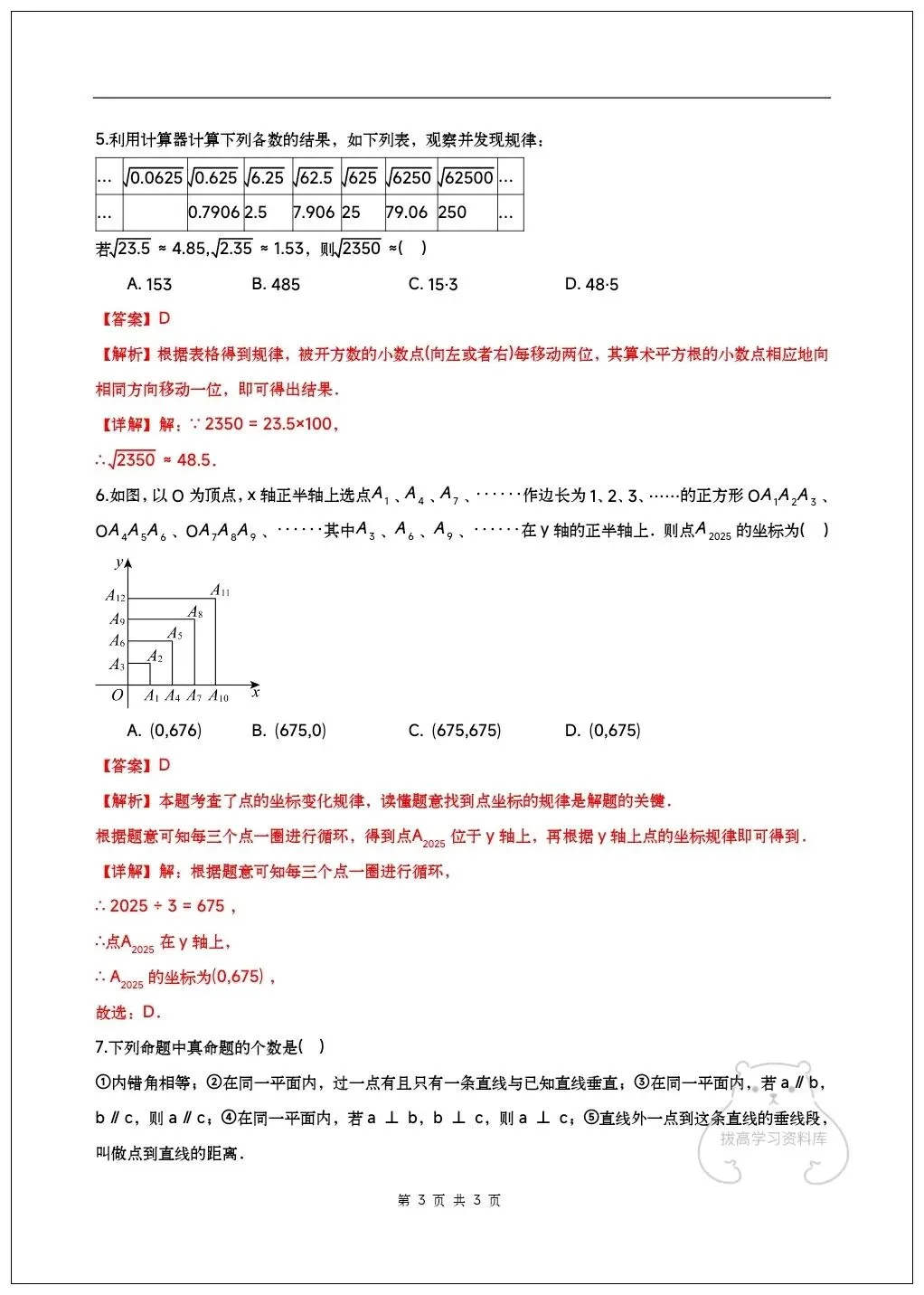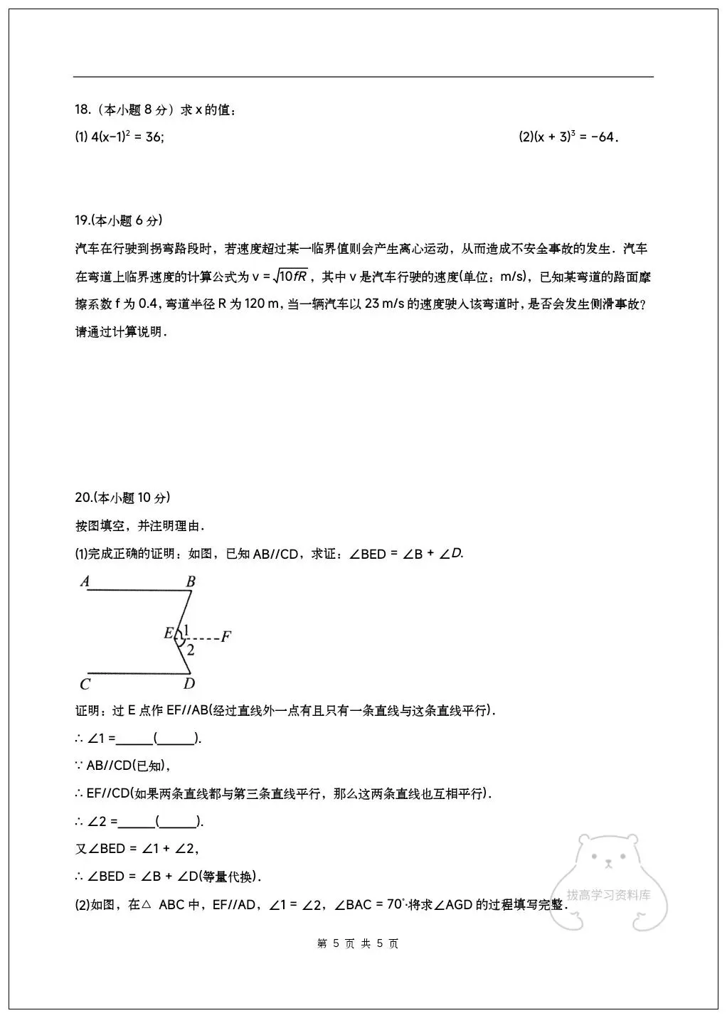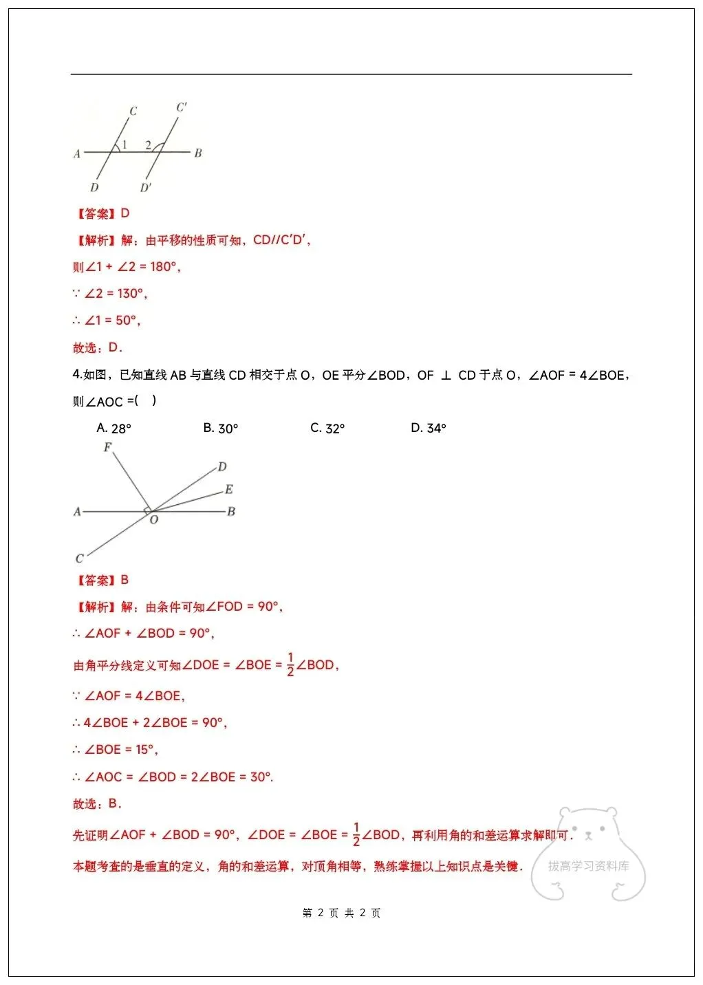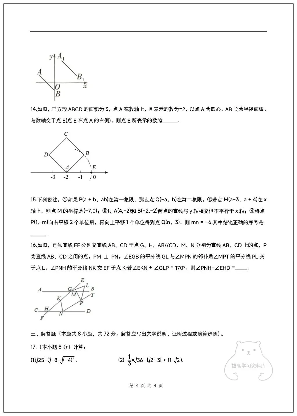 2026七年级下册数学期中试卷(附答案解析)共6套,可下载打印!