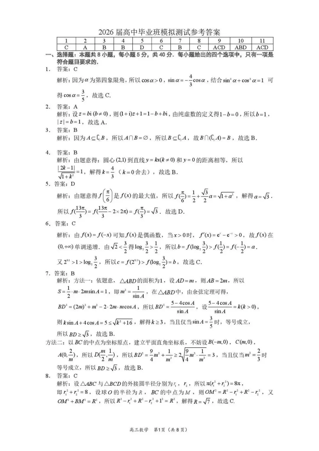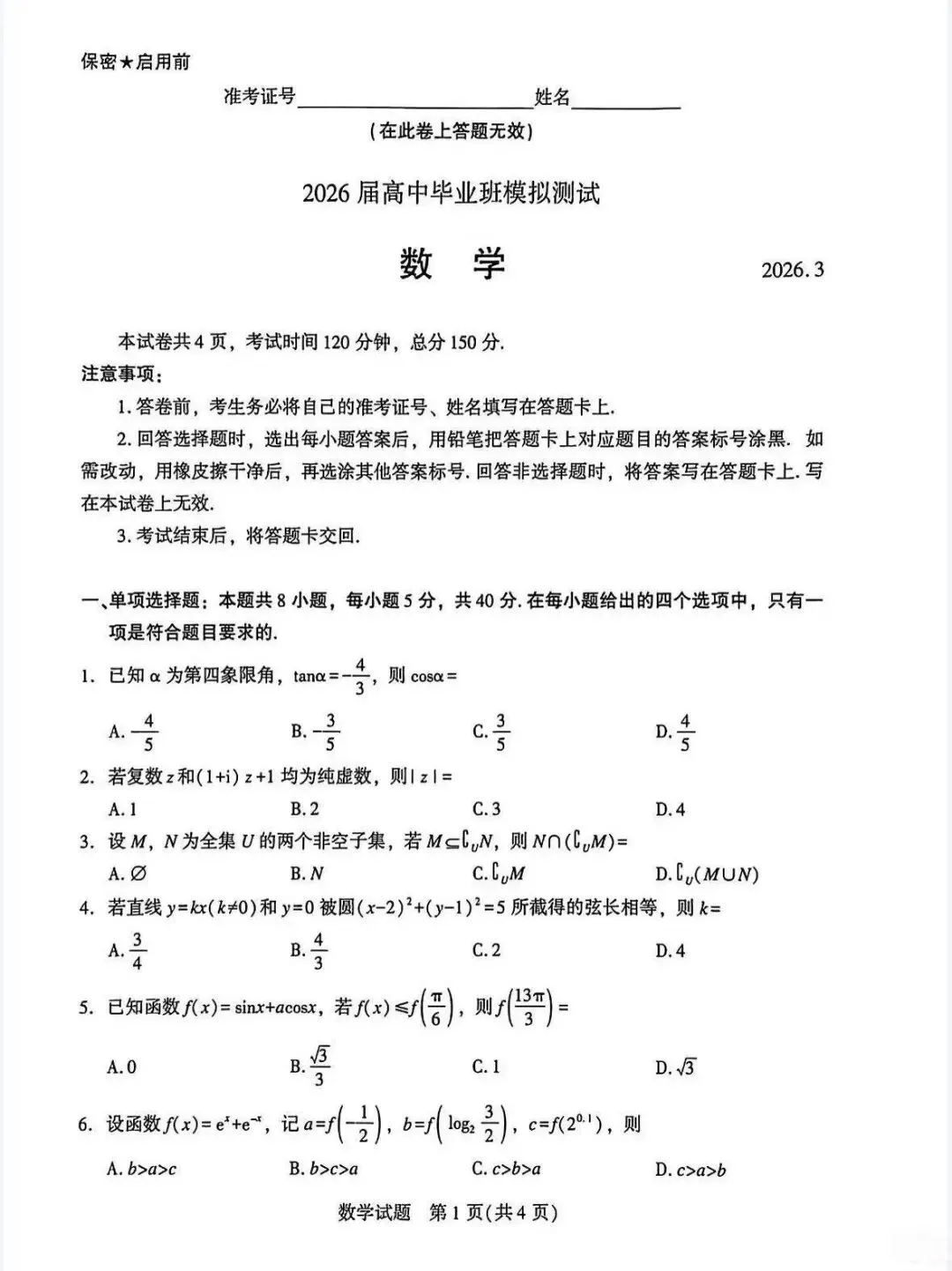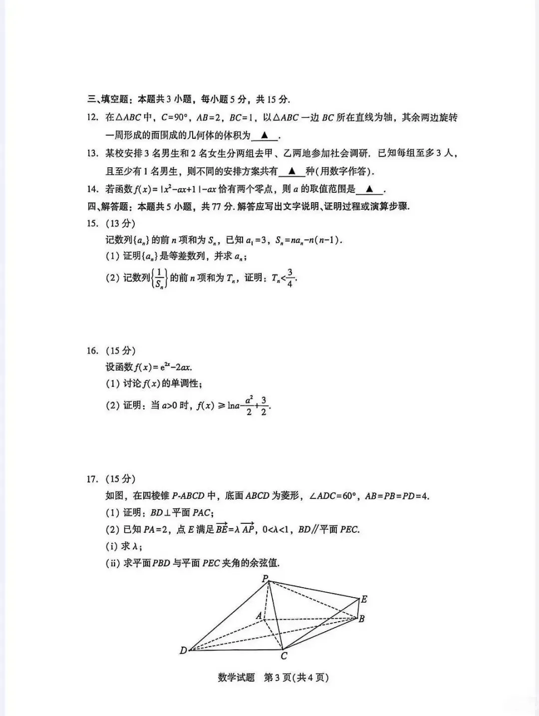 数学试卷+答案
