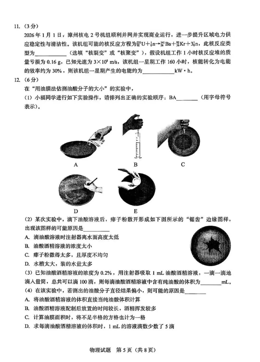物理试卷+答案