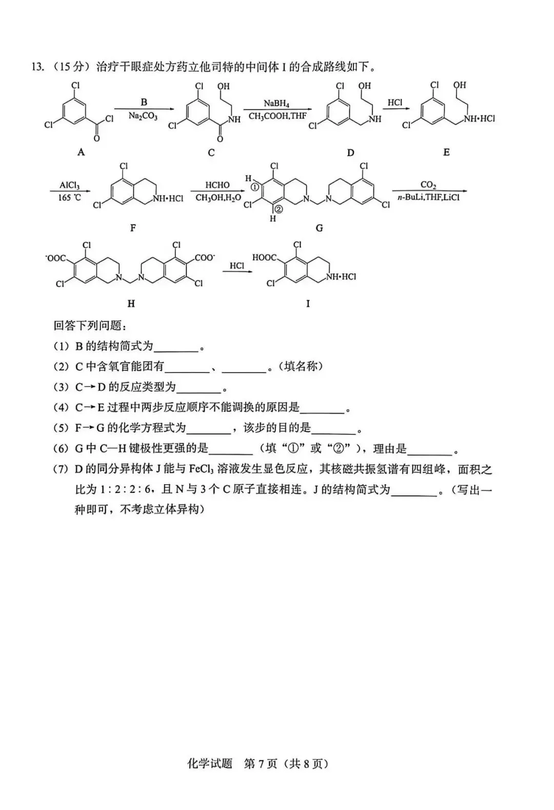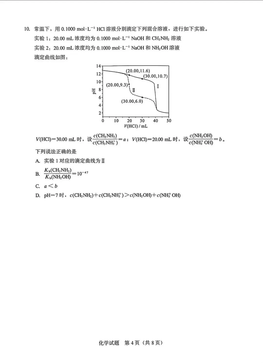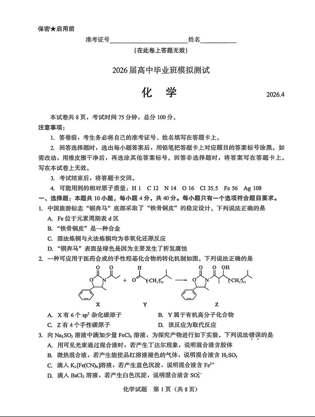 化学试卷+答案