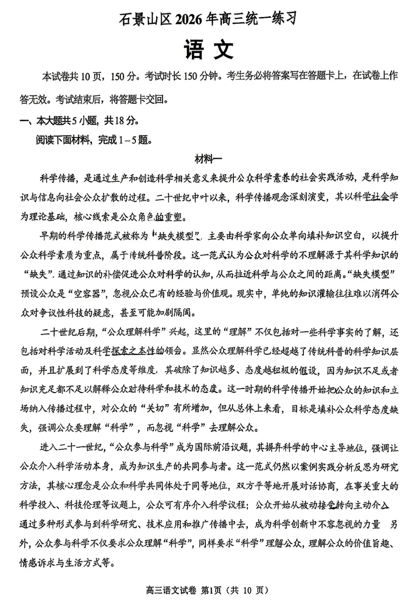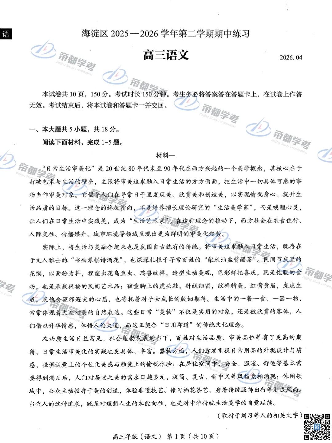 一模语文刚考完,你家孩子是不是也“心里没底”?北京高中入学整理了【2026北京各区高三一模试题】速领!刚考完的一模试题,就是最好的复习资料!